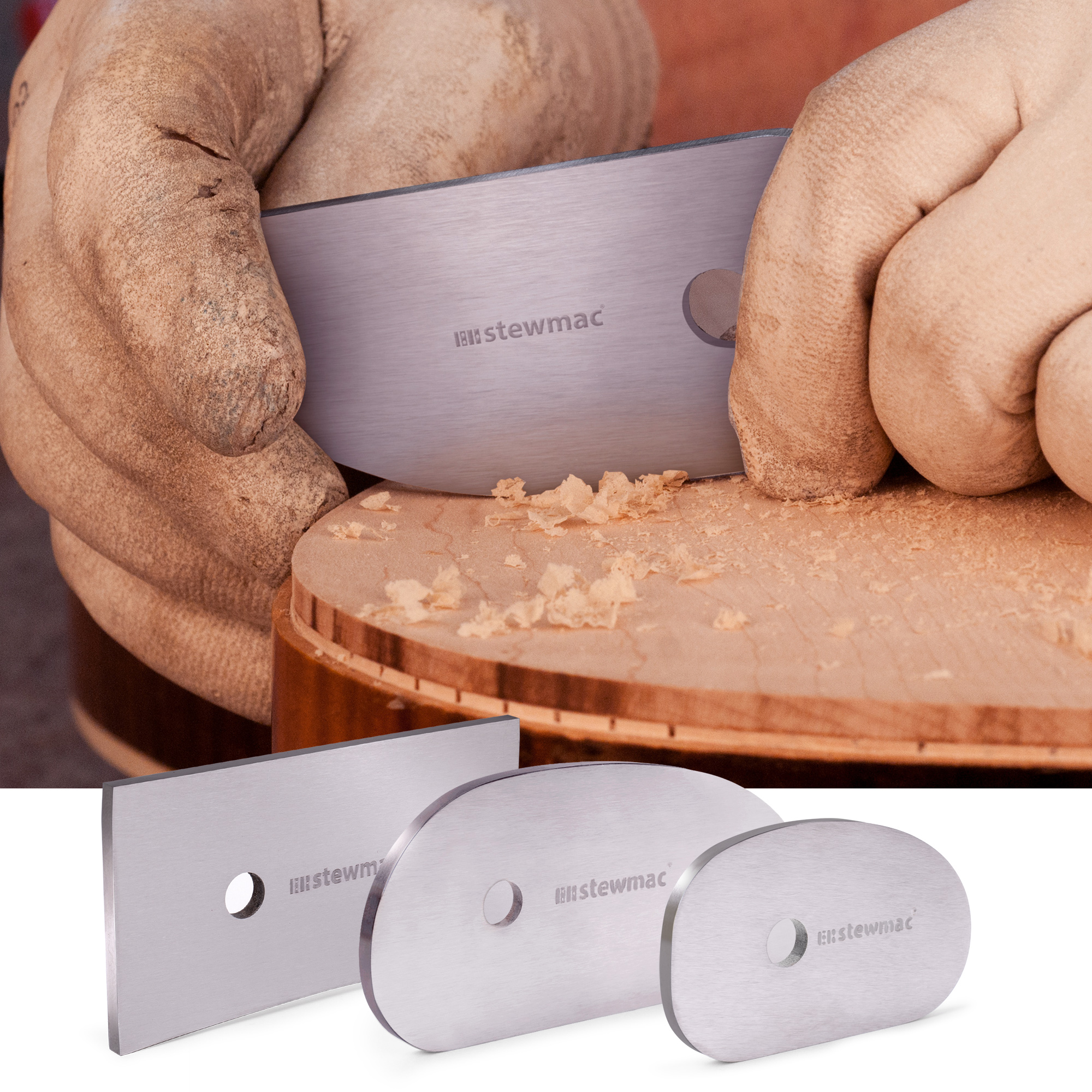 Leur épaisseur de 1/8 po confère aux grattoirs Ultimate Scraper une solidité nettement supérieure aux grattoirs traditionnels. Avec ses deux arêtes abrasives, l’outil enlève la matière dans les deux directions sans fléchir ni générer de vibrations. Cette caractéristique vous fait gagner du temps et vous facilite la tâche ! La tranche de cet outil en acier trempé est également plus durable. Les formes sont spécifiquement conçues pour pouvoir affiner et façonner à la main les tables et fonds d’instruments bombés, et pour aplanir les filets et les surfaces planes.