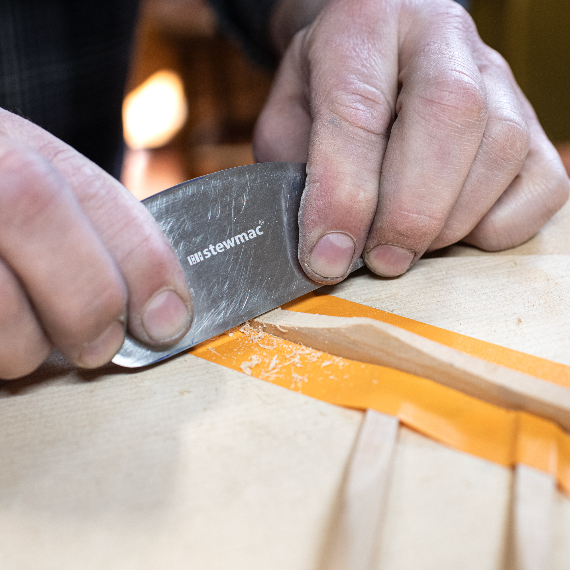 Optez pour le grattoir rectangulaire/concave lorsque vous devez conserver des angles nets, serrés et bien perpendiculaires dans les rainures de filets et les cavités de manche. Il permet également de lisser les filets et d’accompagner les différentes étapes de création d’un nouveau manche. Merci au luthier renommé Michael Tobias d’avoir suggéré cette nouvelle forme !