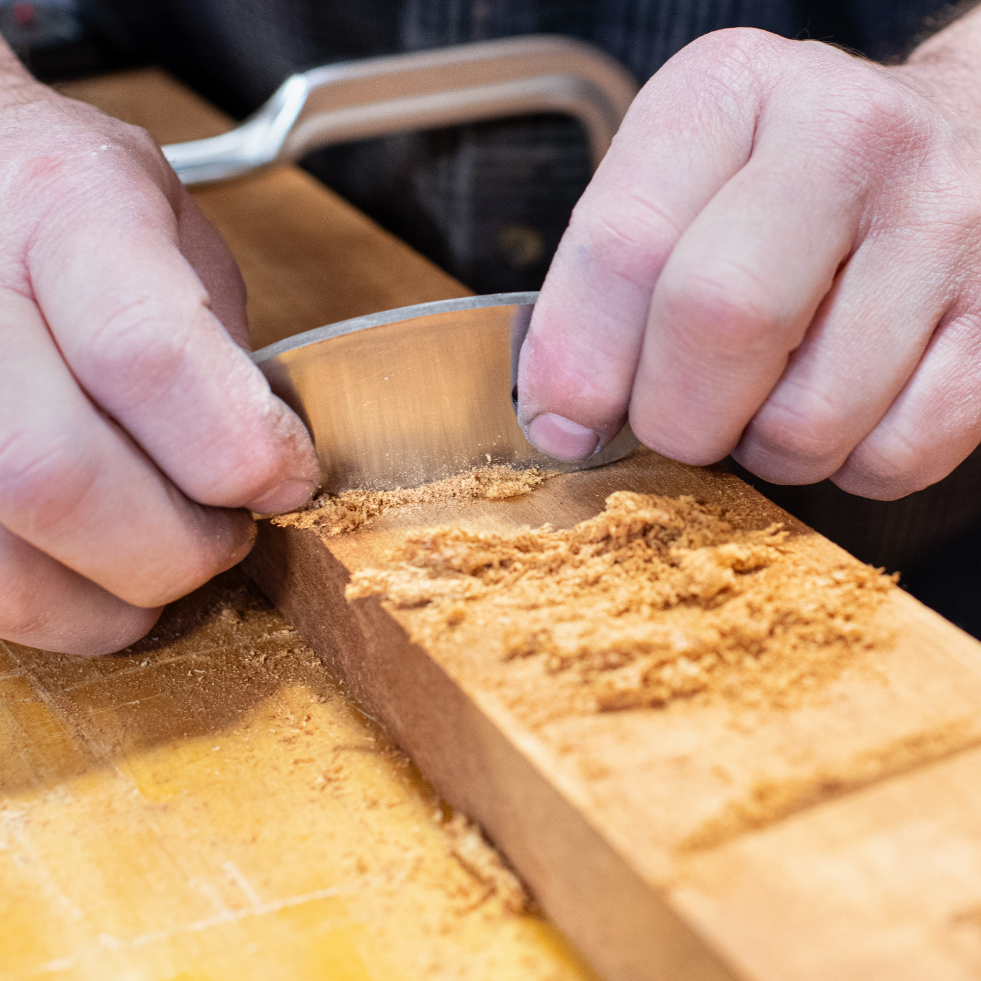 Pour obtenir une surface en bois parfaitement lisse, rien ne vaut un bon grattoir bien affûté. Le luthier chevronné Al Carruth a repensé le grattoir classique pour en faire un outil révolutionnaire, grâce à des améliorations pratiques pour les projets impliquant des instruments à cordes : l’Ultimate Scraper d’origine. Nous avons ajouté une deuxième version miniature, très appréciée pour travailler dans les zones plus restreintes.