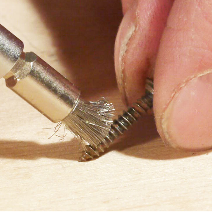 Mini brosse métallique : pour retirer la corrosion des pontets du chevalet, etc. |
