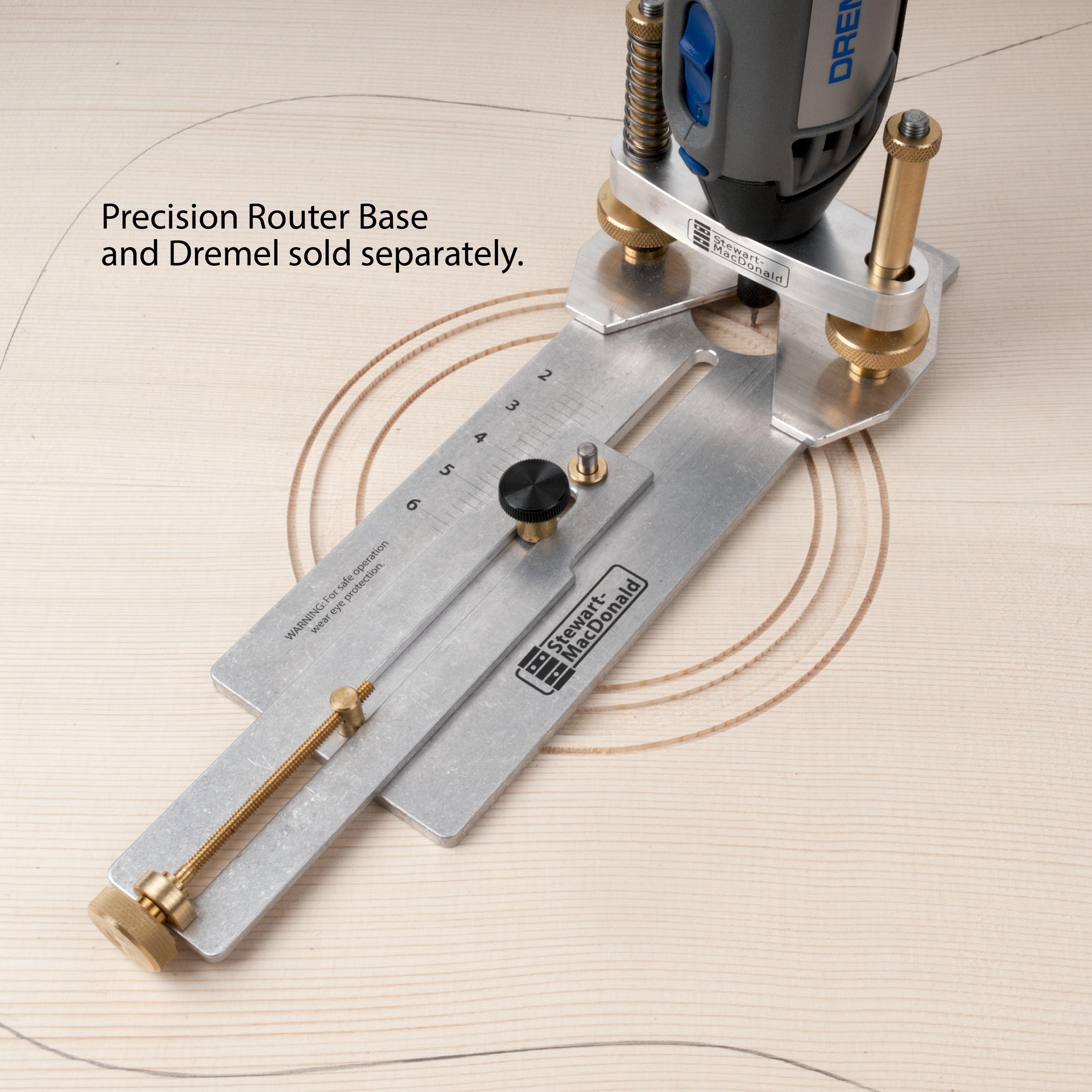 The Soundhole and Rosette Routing Jig est un outil usiné de qualité, conçu pour être utilisé avec notre base de routeur de précision et fonctionne avec votre Dremel. La base du routeur et les outils rotatifs ne sont pas inclus.