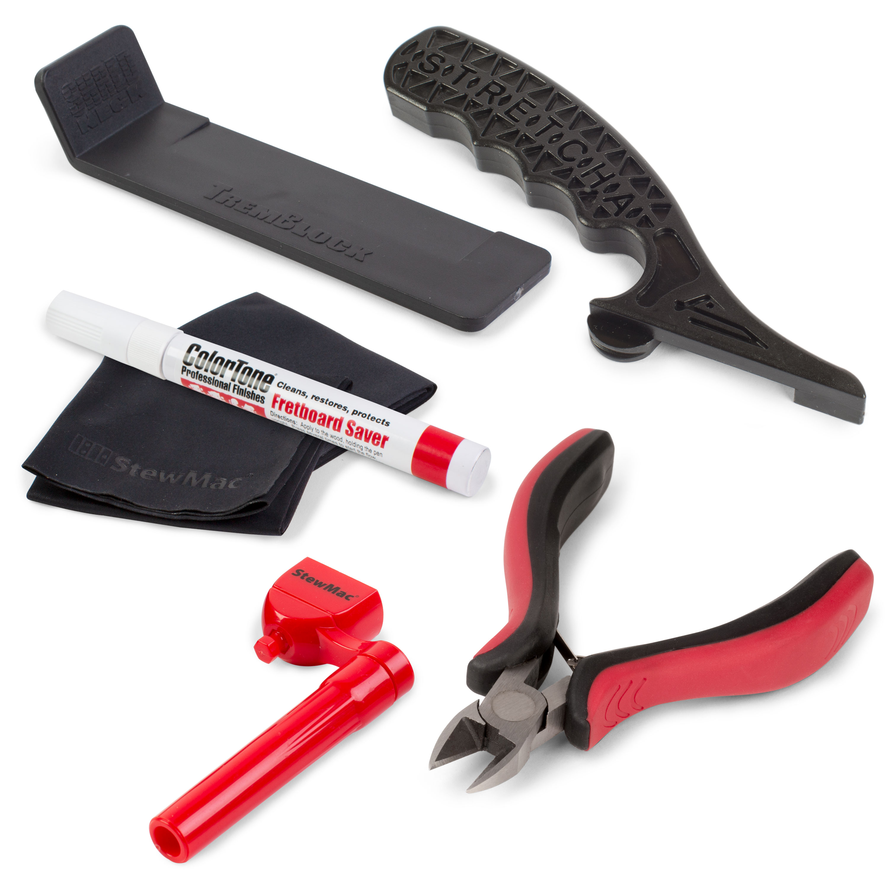 Dans cet ensemble, vous obtiendrez notre coupe-chaîne professionnel pour couper facilement vos cordes jusqu’au poteau, le coupe-chaîne pour régler rapidement, le sac à dos pour planche à treillis ColorTone pour nettoyer et protéger rapidement votre planche, le String Stretcha pour régler rapidement les cordes et deux chiffons de polissage pour garder chaque partie de votre guitare propre.