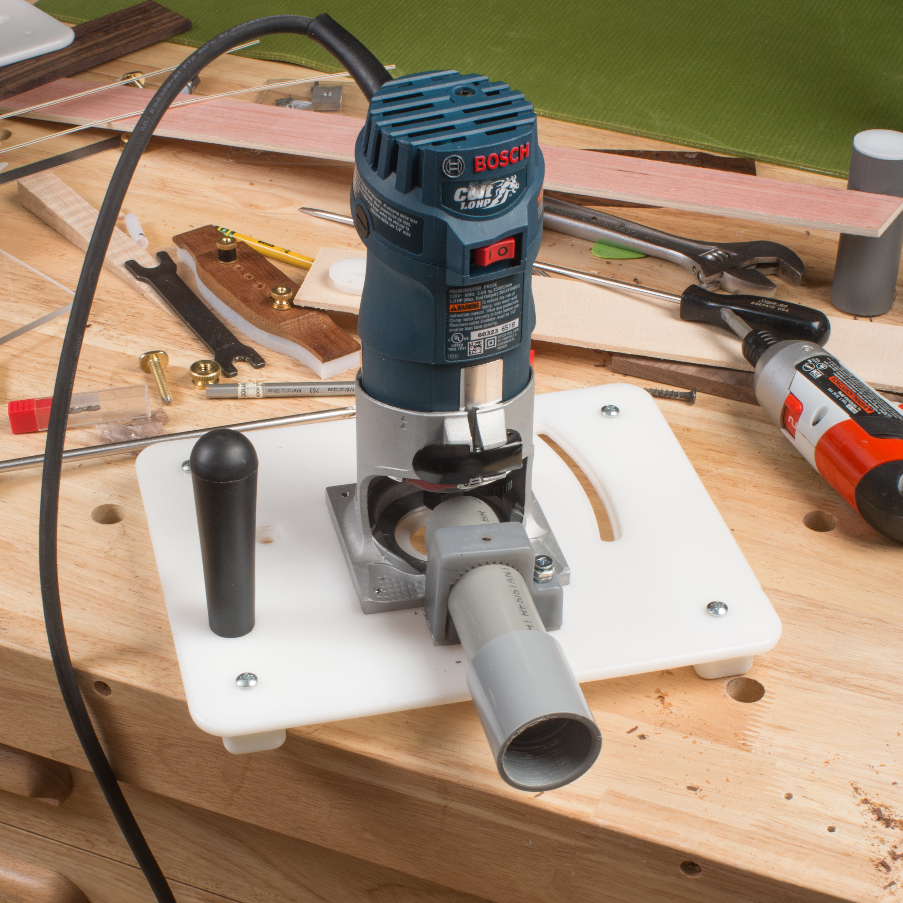 L'inventeur de la station de ponçage Friend de Luthier est une petite table de routeur portable qui peut être fixée rapidement à votre paillasse et facilement stockée lorsqu'elle n'est pas utilisée.
