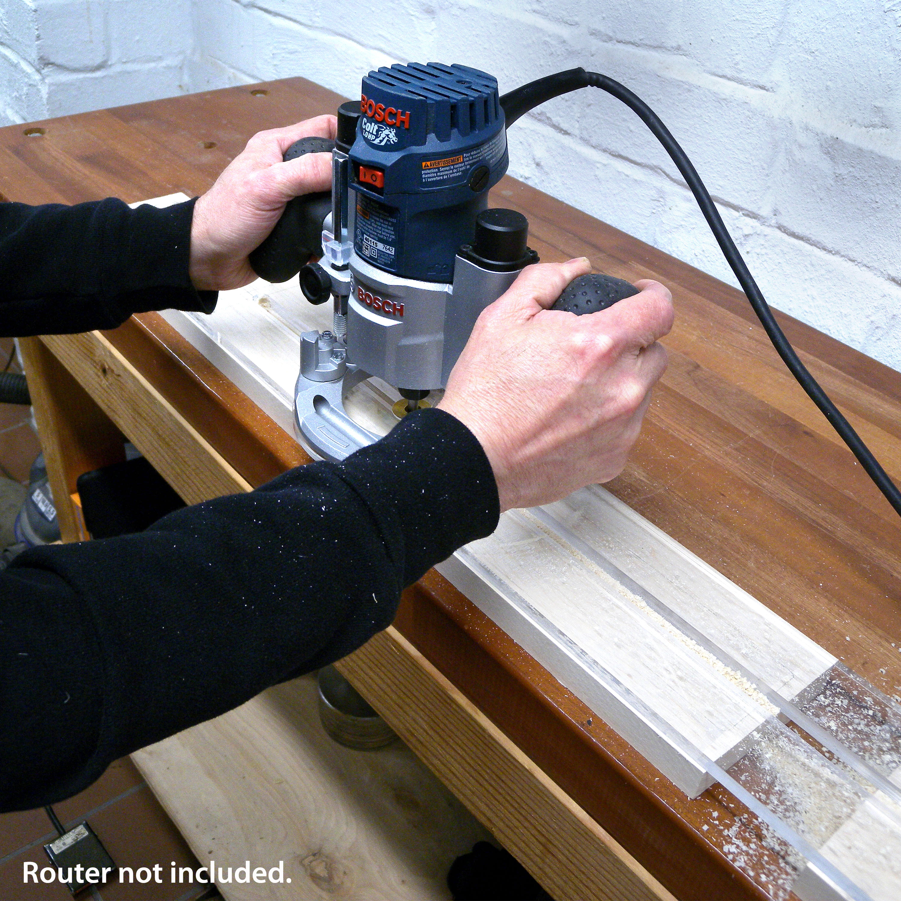 Nous avons facilité la construction de ce gabarit vous-même. Le gabarit, la base de routeur en acrylique personnalisée, le cône de centrage (qui maintient votre fresado aligné sur le gabarit) et la base de plongeon Bosch sont tous disponibles séparément. Obtenez tout ou exactement ce dont vous avez besoin !