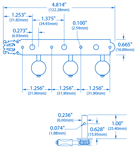 Les modèles de pneus ornent les plaques de base en acier gravées et les engrenages à vis sans fin sont montés sur des supports carrés de style ancien. Ces mécaniques sont également équipés de l’engrenage inversé « vis sans fin sous le poteau » populaire au début du XXe siècle.