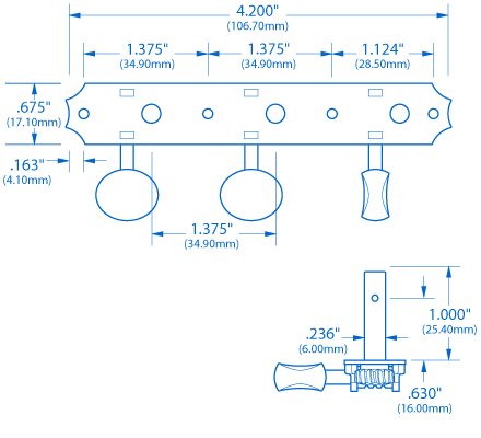 Les mécaniques d’avant-guerre de style Kluson sont renaissants ! Réplique des mécaniques 3-on-plate avec des supports de vis sans fin « à languette pliée », fabriqués par Kluson de la 1930s à la 70s.