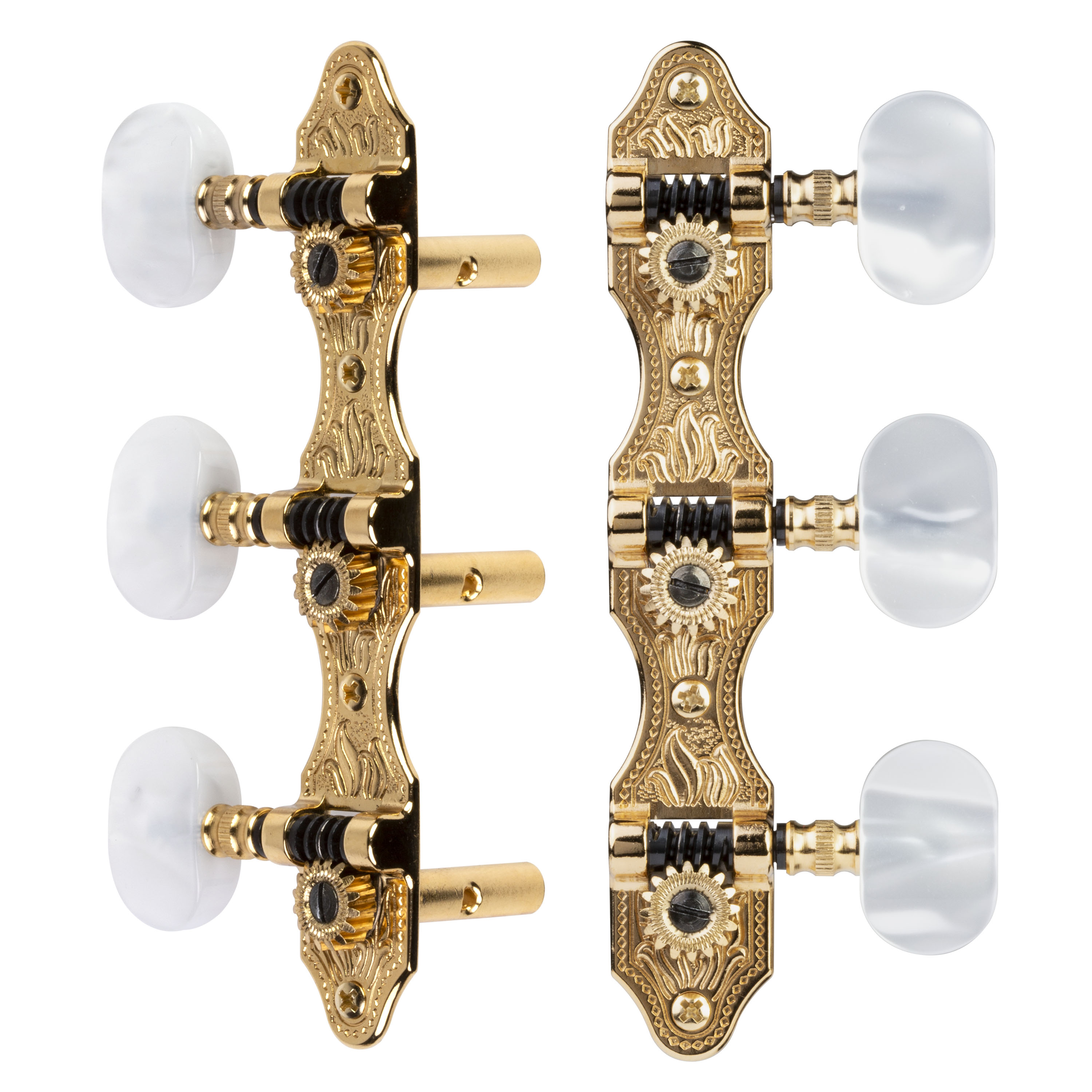 Schaller fabrique ces tuners de luxe montés sur plaque en acier avec des tiges de corde à trou unique pour les têtes de guitare à fente.