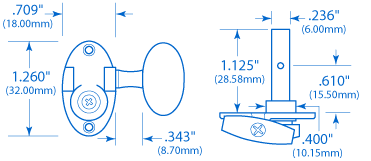 Les machines Schertler sont conçues avec précision avec un rapport 18:1 de transmission, des roulements à vis sans fin en nylon dans une base en zinc compacte et une tension de interrupteur réglable. Le résultat est un fonctionnement incroyablement fluide et précis. Tous les modèles sont dotés de boutons en ébène poli véritable équipés de bagues d’arbre internes en acier pour une durabilité accrue et de couronnes en laiton non plaqué attrayantes.Également disponible pour chaîne en acier placage de tête solide et des classique guitares.