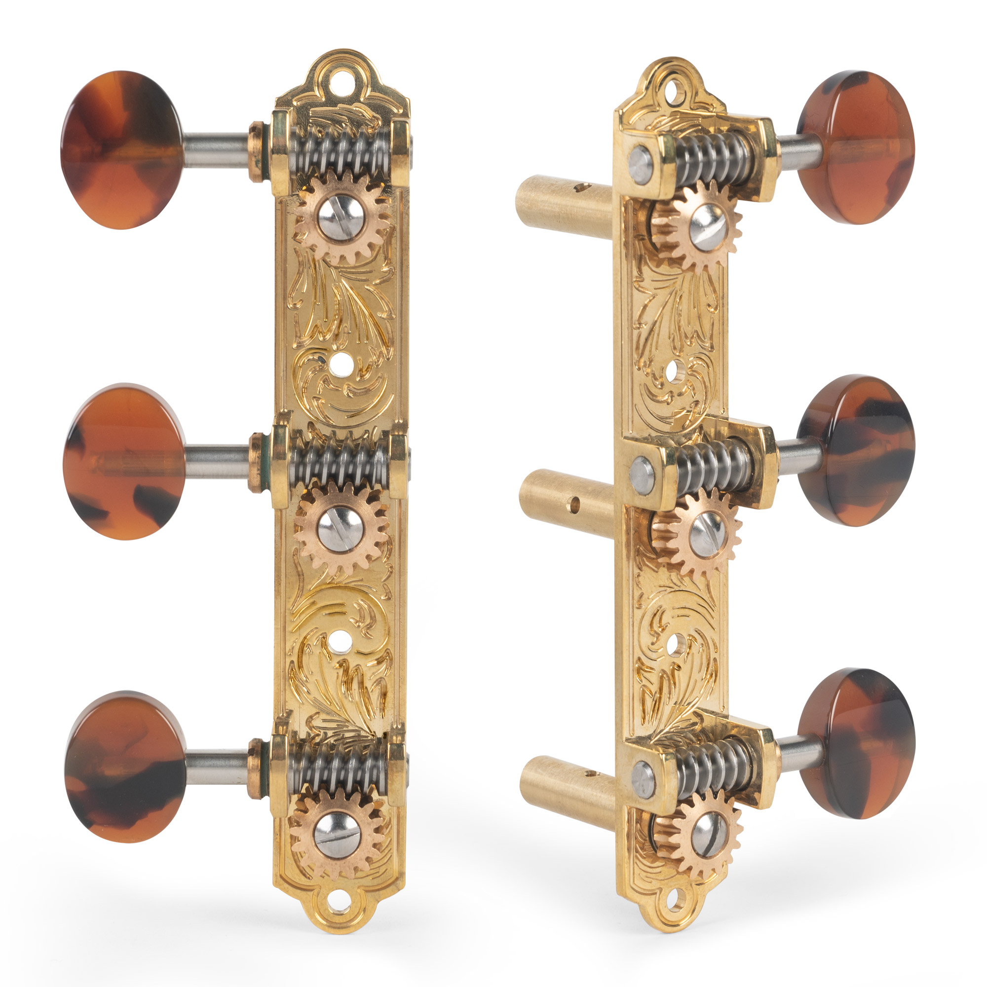 Tuners de guitare Waverly 3-On-Plate avec boutons Tortoise foncée pour têtes à fente