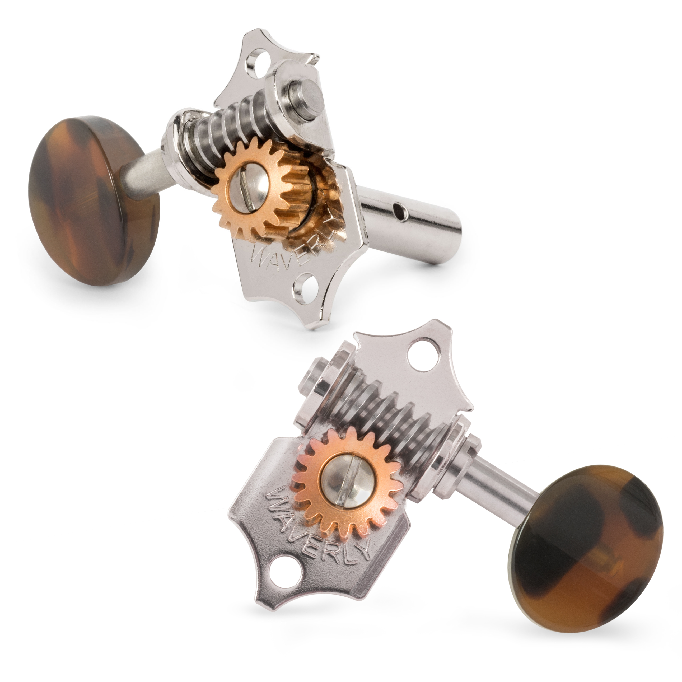 Avec les mécaniques Waverly, vos guitares sont bien accordées et le restent. La conception brevetée de Waverly associe l'acier inoxydable au bronze pour créer un réglage lisse et antidérapant. Les machines Waverly sont mécaniques pour remplacer les instruments de valeur. Elles sont faites à la main pour s’adapter précisément sans forer sur les guitares Martin et Gibson plus anciennes. Des fabricants tels que C.F. Martin, Gibson, Collings, Santa Cruz, Huss & Dalton, Sams et Bourgeois choisissent Waverlys pour leurs instruments les plus raffinés.
