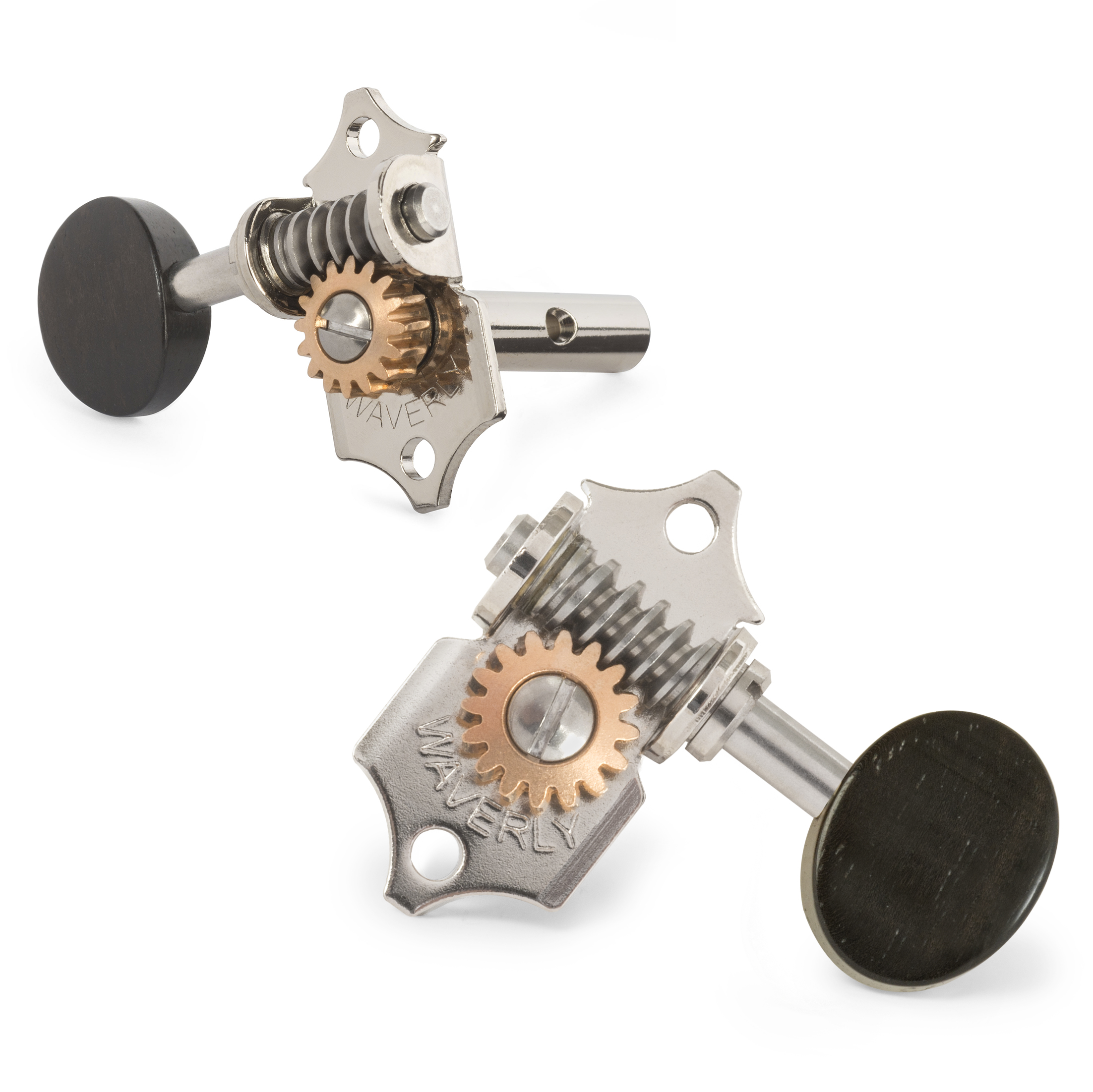 Avec les mécaniques Waverly, vos guitares sont bien accordées et le restent. La conception brevetée de Waverly associe l'acier inoxydable au bronze pour créer un réglage lisse et antidérapant. Les machines Waverly sont mécaniques pour remplacer les instruments de valeur. Elles sont faites à la main pour s’adapter précisément sans forer sur les guitares Martin et Gibson plus anciennes. Des fabricants tels que C.F. Martin, Gibson, Collings, Santa Cruz, Huss & Dalton, Sams et Bourgeois choisissent Waverlys pour leurs instruments les plus raffinés.