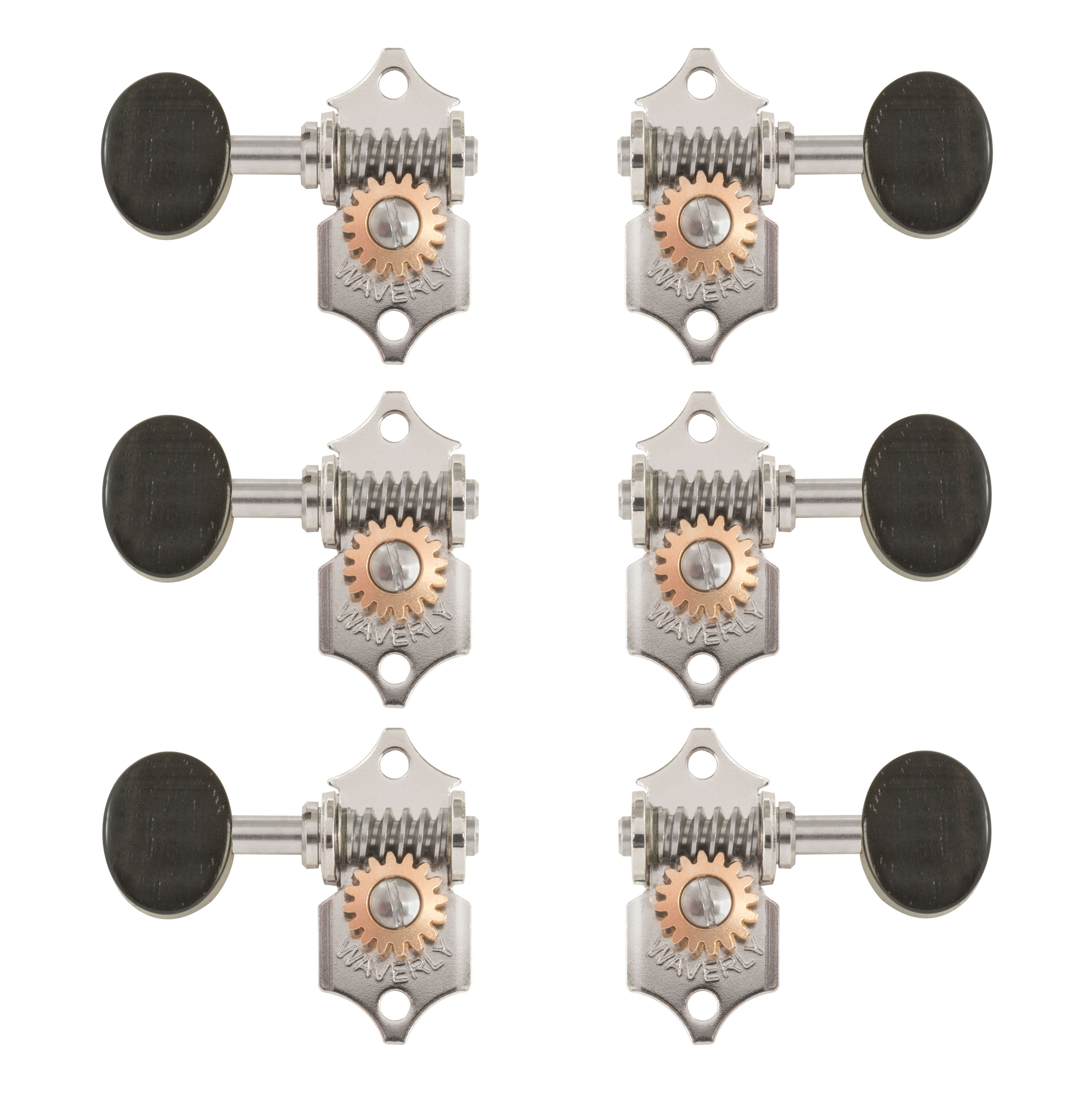 Tuners de guitare Waverly avec boutons en ébène pour têtes à fente