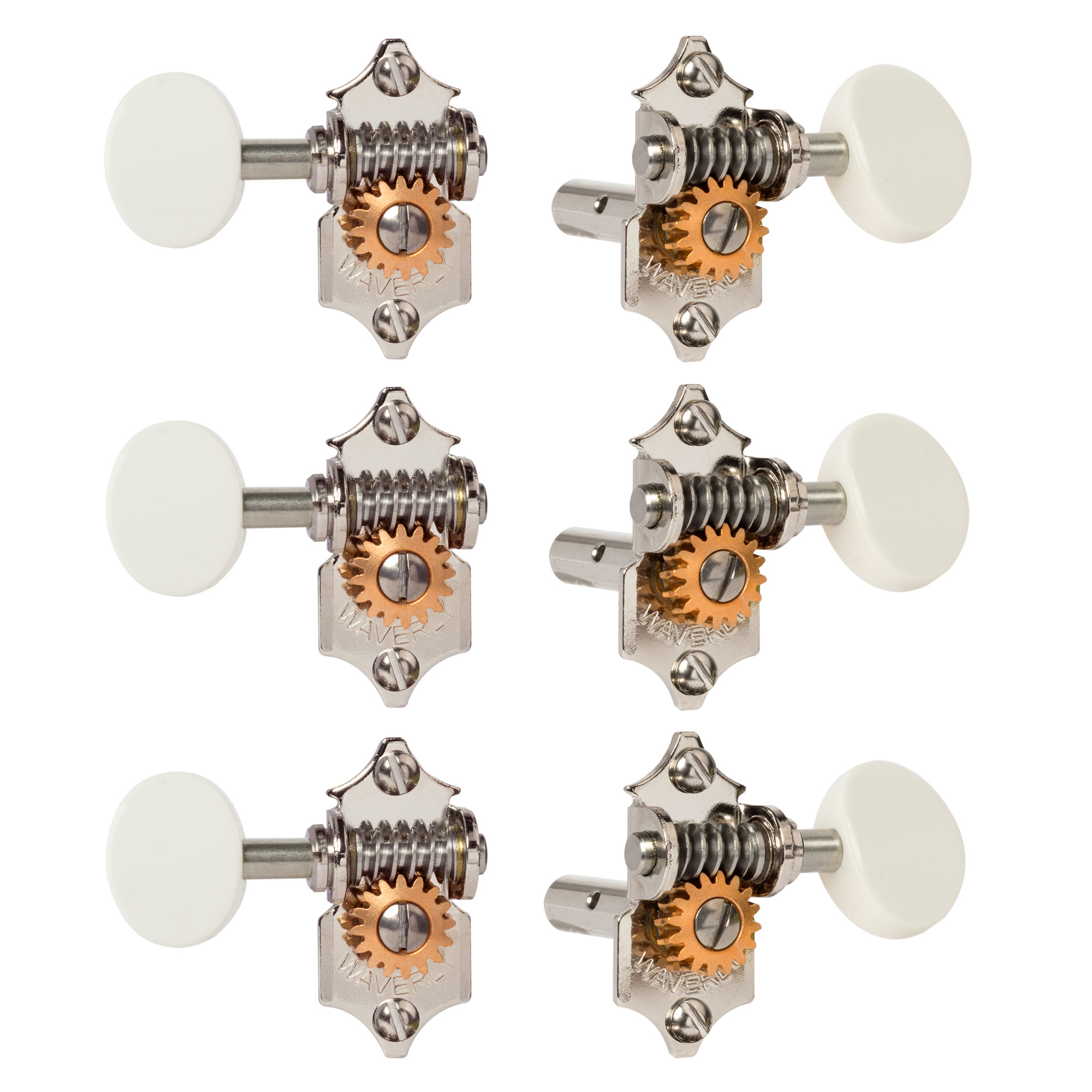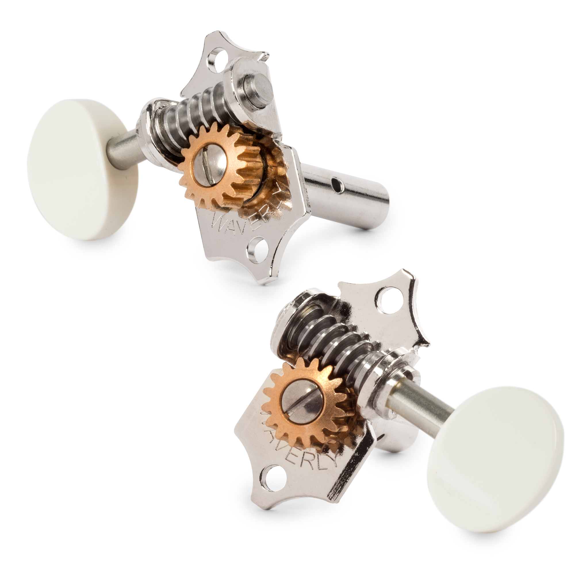 Avec les mécaniques Waverly, vos guitares sont bien accordées et le restent. La conception brevetée de Waverly associe l'acier inoxydable au bronze pour créer un réglage lisse et antidérapant. Les machines Waverly sont mécaniques pour remplacer les instruments de valeur. Elles sont faites à la main pour s’adapter précisément sans forer sur les guitares Martin et Gibson plus anciennes. Des fabricants tels que C.F. Martin, Gibson, Collings, Santa Cruz, Huss & Dalton, Sams et Bourgeois choisissent Waverlys pour leurs instruments les plus raffinés.