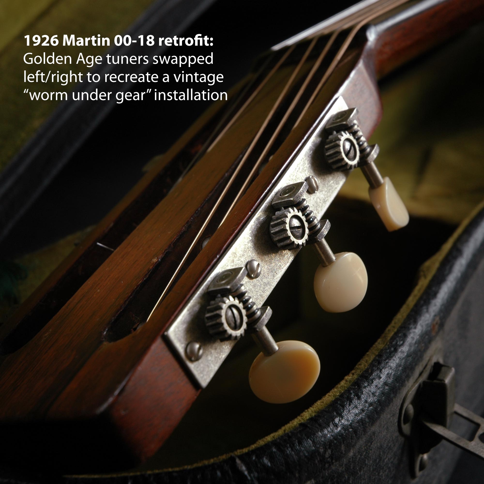 « Les mécaniques Golden Age Restoration sont vraiment géniaux. Je viens de les mettre sur mon 1,29 Gibson L-1...J’aime le fait que quelqu’un ait eu du mal à lui donner l’air bien. » —John Evans, Bruxelles, Belgique