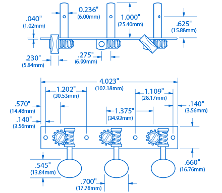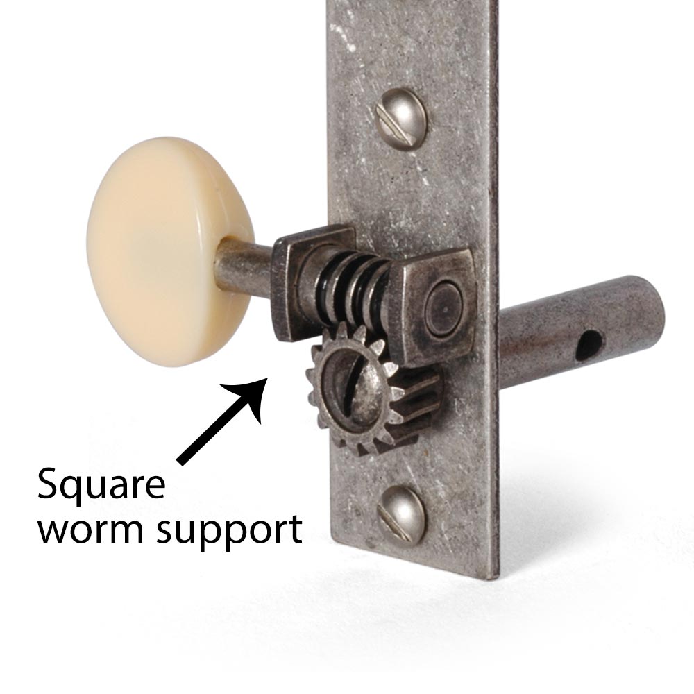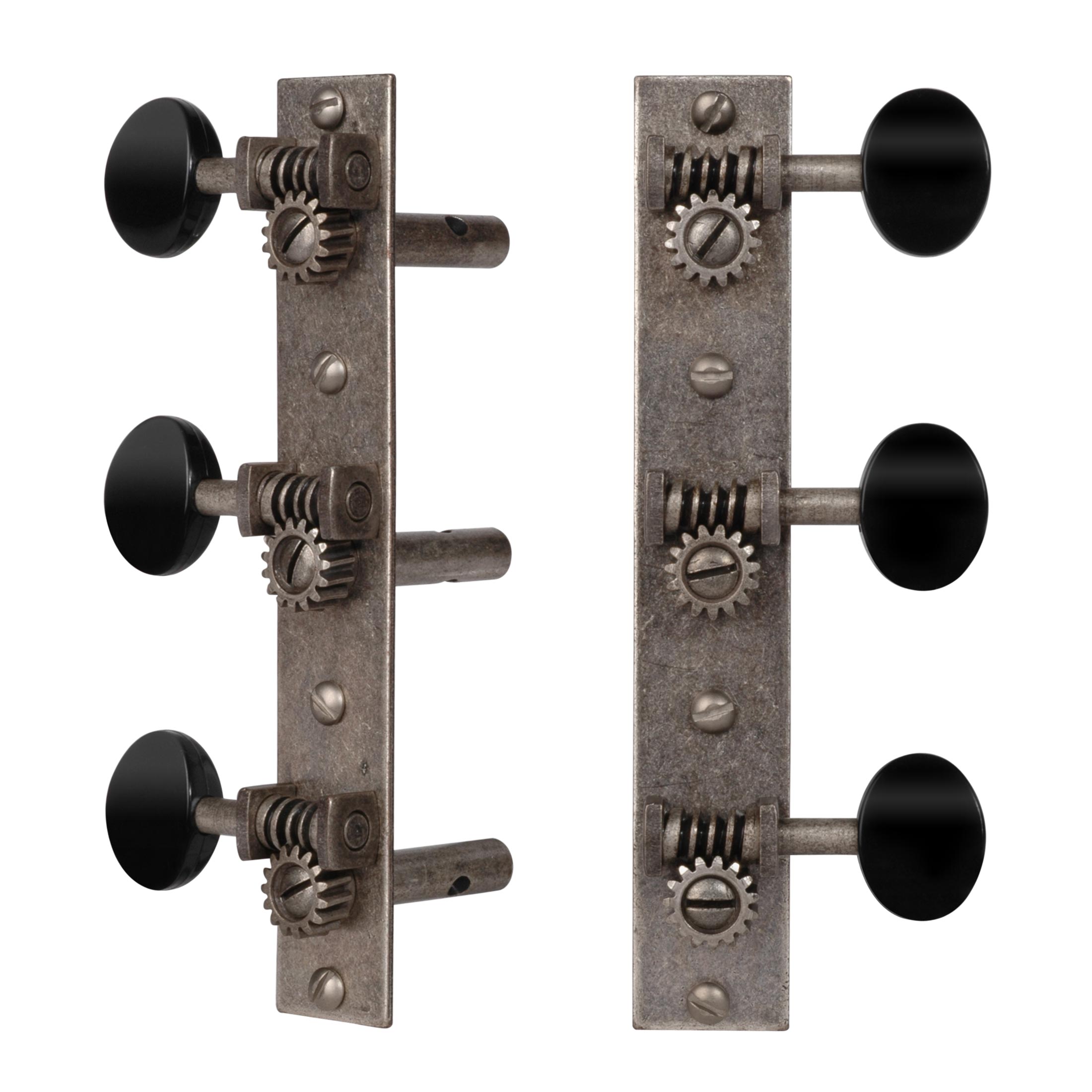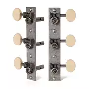Les mécaniques d’avant-guerre renaissent !Nos réplicats de mécaniques toniseur3-on-plate dotés de supports à vis sans fin carrés sur des plaques rectangulaires en acier. Leur rapport de 15:1 vitesse amélioré offre un meilleur réglage que les modèles originaux, et notre finition en nickel relique populaire complète le ferrure vintage. Disponible avec boutons en plastique noir ou crème de forme originale.