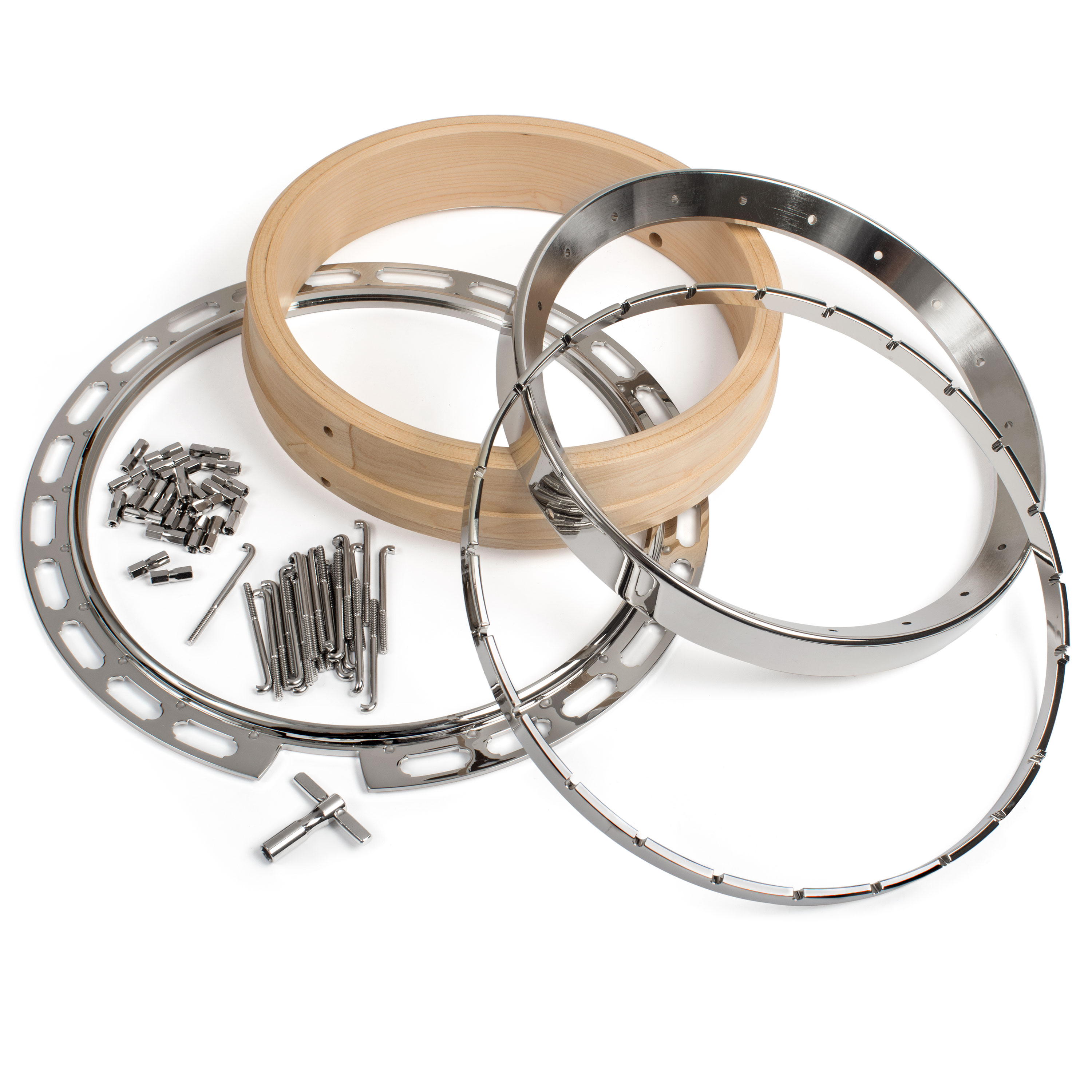 Depuis de nombreuses années, notre tenue de jante de haute qualité est l’une des préférées des banjographes professionnels.Une bride de résonateur en alliage moulé traditionnelle d’une seule pièce et notre bague de tonalité Five-Star en bronze de 11 po de diamètre sont montées à la main sur une jante en érable 3 plis de haute qualité. Des crochets de support, des écrous hexagonaux avec clé et un cercle de tension en laiton cranté complètent la tenue.