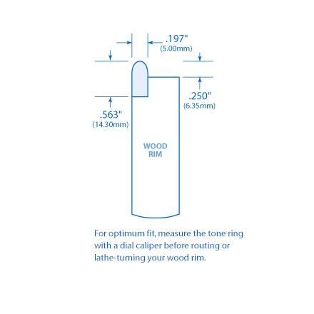 Pour un ajustement optimal, mesurez l’anneau de tonalité avec un pied à coulisse avant d’acheminer ou de faire tourner votre jante en bois.
