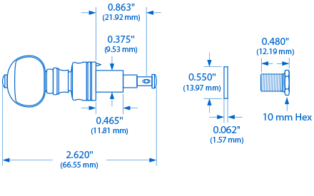 Pour les têtes de cheville de 7/16" à 3/4" (11,11 mm x 19,05 mm) d’épaisseur. Trous de cheville de 3/8" de diamètre requis. La douille hexagonale filetée comprend une rondelle pour aider à protéger la finition de la placage de tête . Jeu de 4.