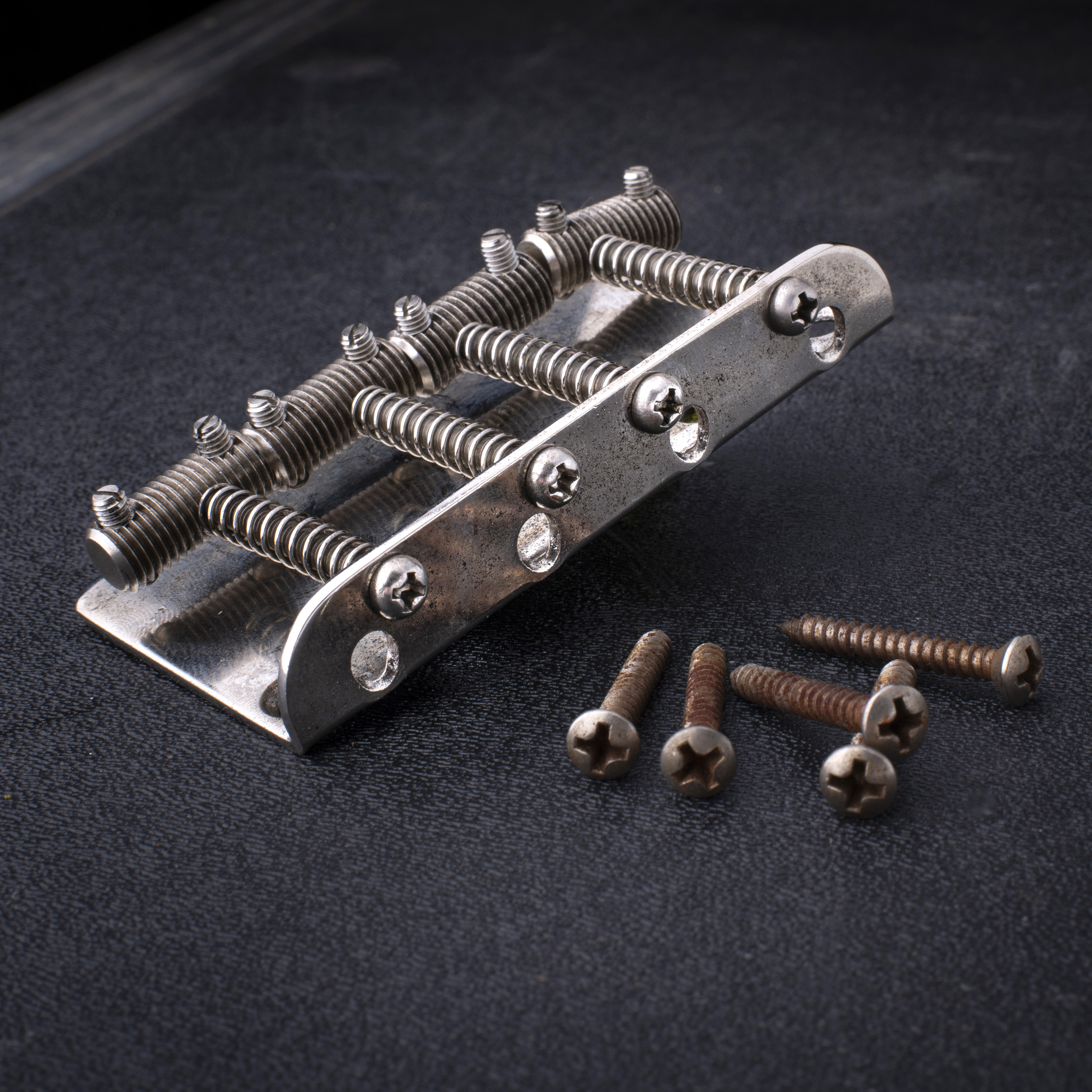Chevalet GuitarSlinger pour basses 4 cordes avec pontets à tige filetée vieilli stabilisé par réfrigération