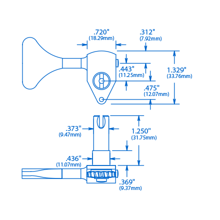 Tuner compact et léger pour les petites têtes de basses avec rapport 20:1 de vitesse. Convertible pour une installation de chaque côté de la placage de tête.