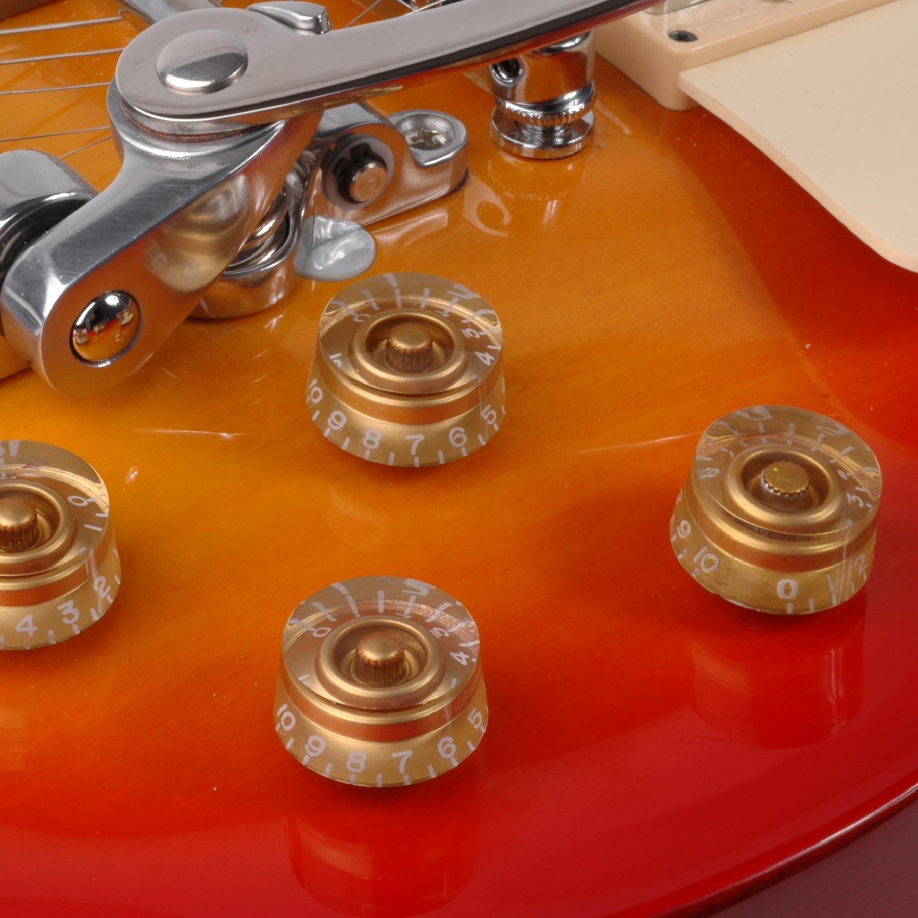 La forme sans traînée des boutons Speed est facile à enrouler autour d’un petit rosé. Sur de nombreux Gibsons, on les appelle également boutons « boîte à chapeau ».
