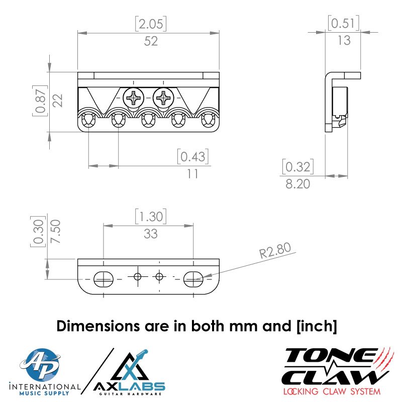 usinés CNC à partir de laiton massif, la pince Tone Claw met enfin à niveau cette partie cruciale de votre guitare. Les ressorts de trémolo sont enroulés autour d’une tige ajustée, puis verrouillés en place avec une pince. Cela garantit un transfert maximal des vibrations et permet d’obtenir une meilleure tonalité, une durabilité accrue et une meilleure stabilité de réglage.