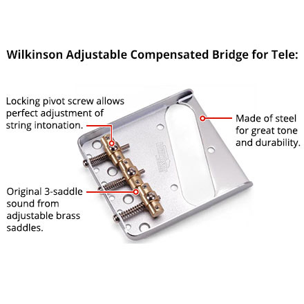 Enfin, un pont à 3 sillet qui peut être ajusté pour jouer en accord ! Une vis de verrouillage pivotante au centre de chaque sillet permet un réglage parfait de l’intonation de la corde.
