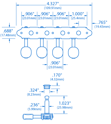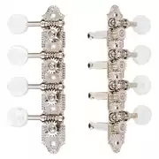 Plaques de base moulées sous pression gravées, rapport 18:1 de vitesse. Ensembles complets de mécaniques gauche/4 droit, avec tiges de interrupteur de longueur égale et boutons amovibles en plastique nacré.