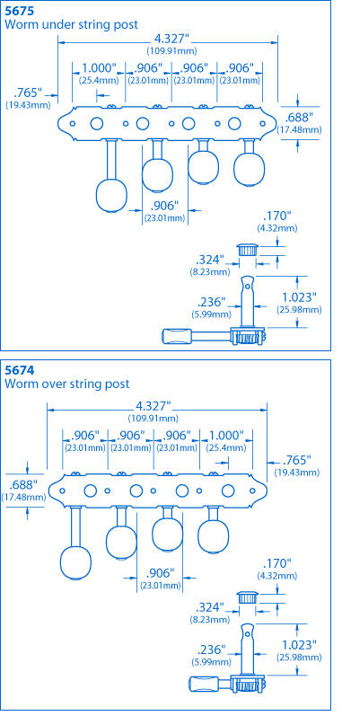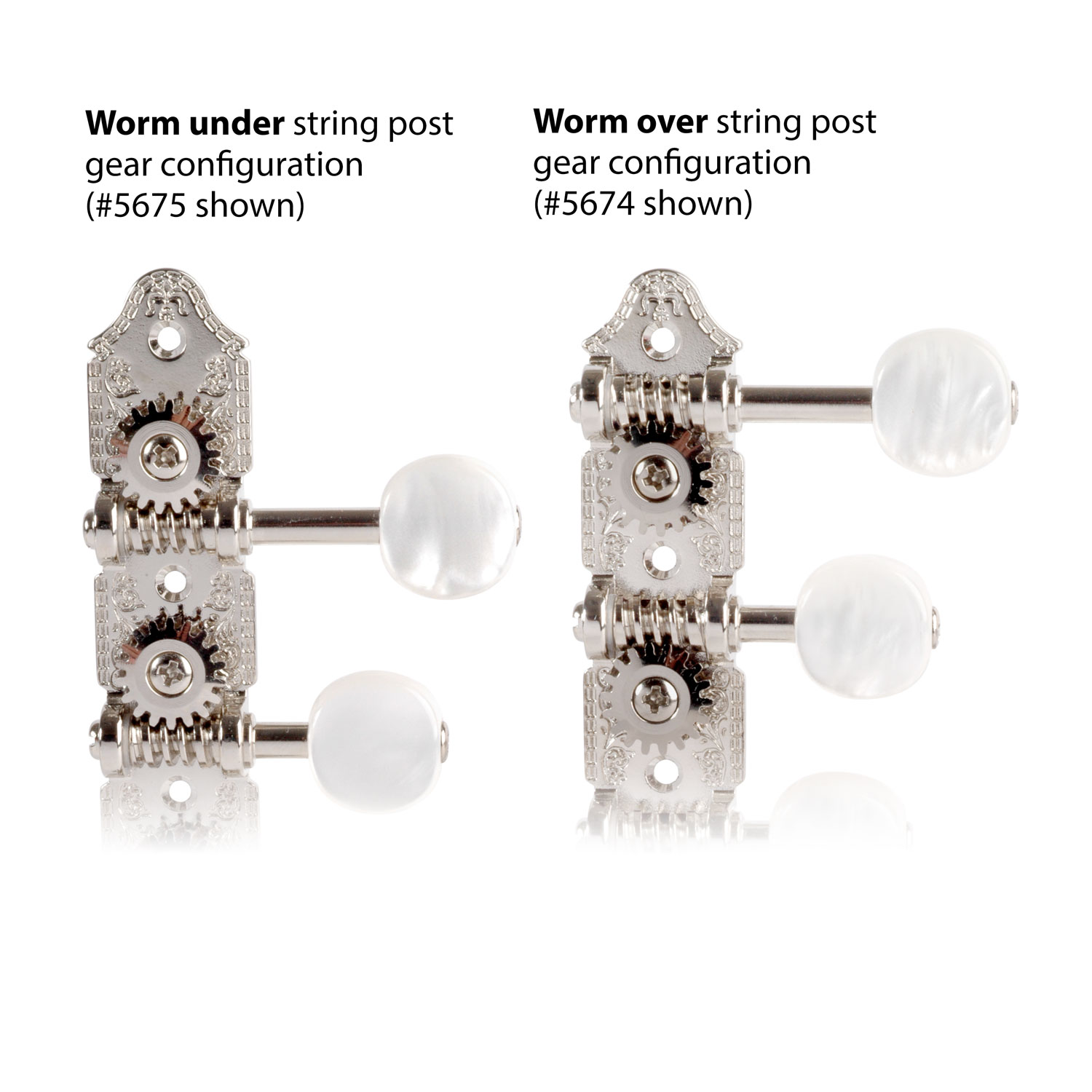 Les mécaniques en mandoline Grover de style F sont disponibles en deux configurations d’engrenage différentes, avec des plaques de base moulées gravées et un rapport d’ 18:1 engrenage.