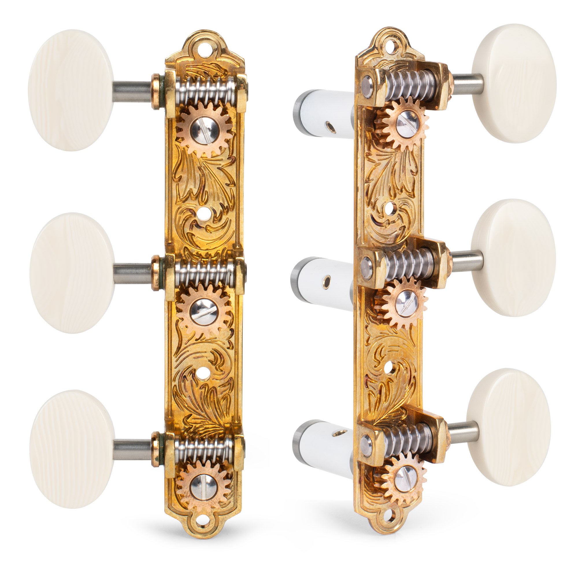 Mécaniques Sloane pour guitares classiques avec têtes en Ivoroid (imitation ivoire) et plaque de fixation à motif végétal