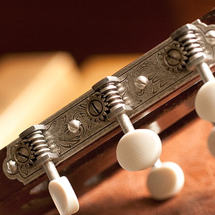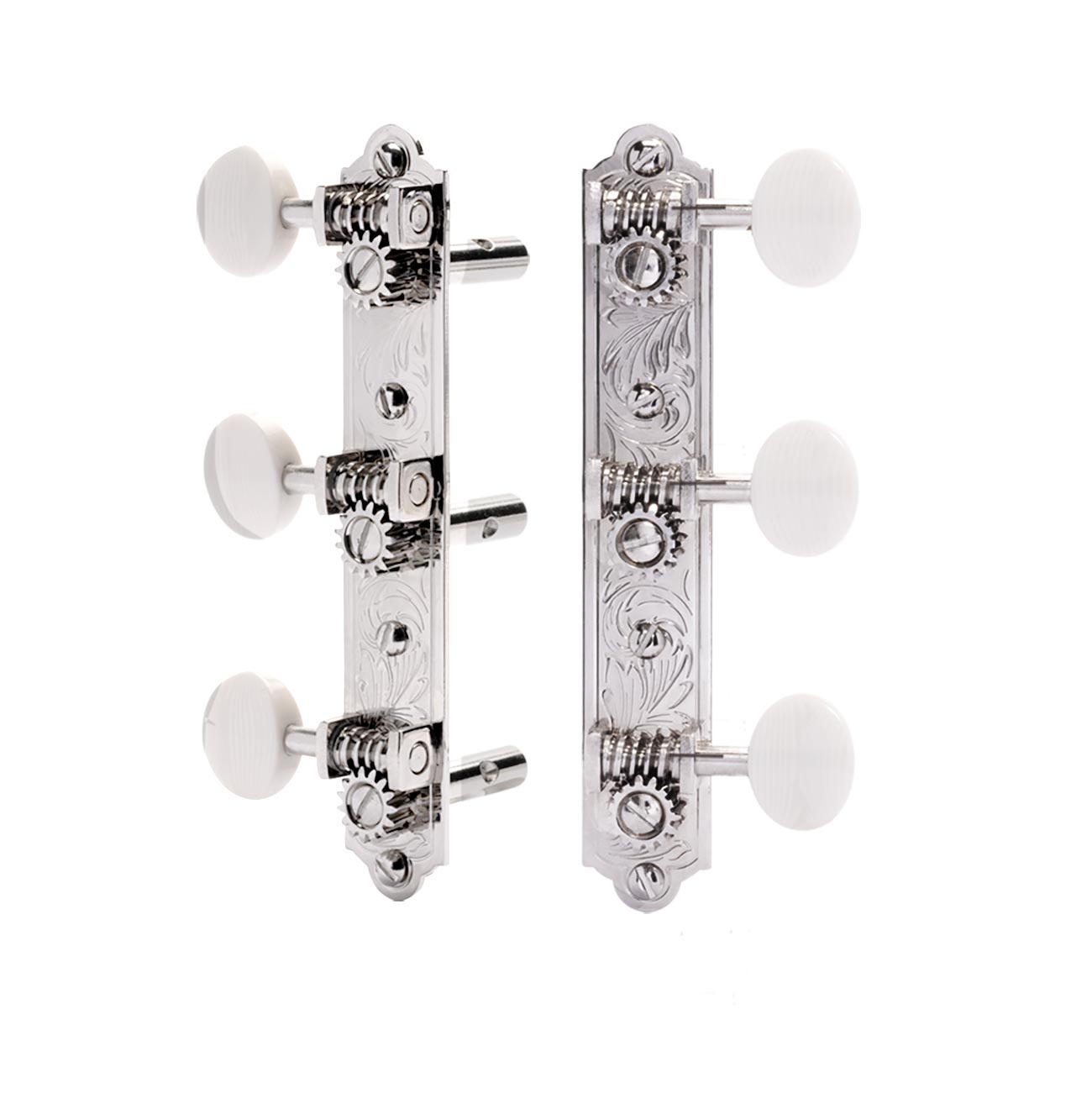 Les tuners d’avant-guerre renaissent ! Nos réplicats 3-on-plate tuners avec motif gravé distinctif, fournis par Waverly aux fabricants de guitares de la 1920s à la 40s.