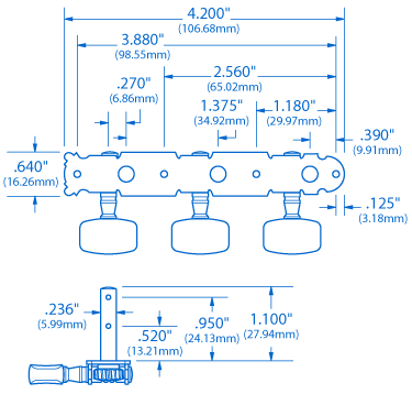 Ils sont polyvalents : les tiges de chaîne de 1/4" (6,35 mm) de diamètre ont des trous doubles, vous pouvez donc installer ces mécaniques sur des têtes de cheville pleines ou fretté . Plaqué nickel avec boutons en plastique blanc.Espacement des tiges de chaîne de 1-3/8 po (34,93 mm po), rapport d’ 14:1 engrenage. Jeu complet de 3 à gauche, 3 à droite. Vis de montage incluses.