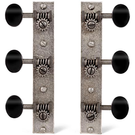 Exclusivité Stewart-MacDonald, nos répliques de nos mécaniques 3-on-plate dotés de supports à vis carrés sur des plaques d’acier rectangulaires. Leur rapport de 15:1 vitesse amélioré offre un meilleur réglage que les modèles originaux, et notre finition en nickel relique populaire complète le ferrure vintage.
