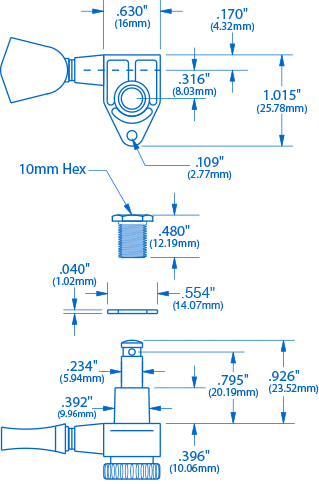 Tirez la corde apprise à travers le trou du tuner, et en tournant la molette, la corde est verrouillée dans la tige. Juste quelques tours du interrupteur tuner et vous êtes sur le pas. Étant donné qu’il n’y a qu’un enroulement partiel de corde autour de la tige, la stabilité du réglage est considérablement améliorée. Les mécaniques verrouillables sont excellents pour les guitares trémolo non verrouillables et pour les joueurs qui se plient fortement.