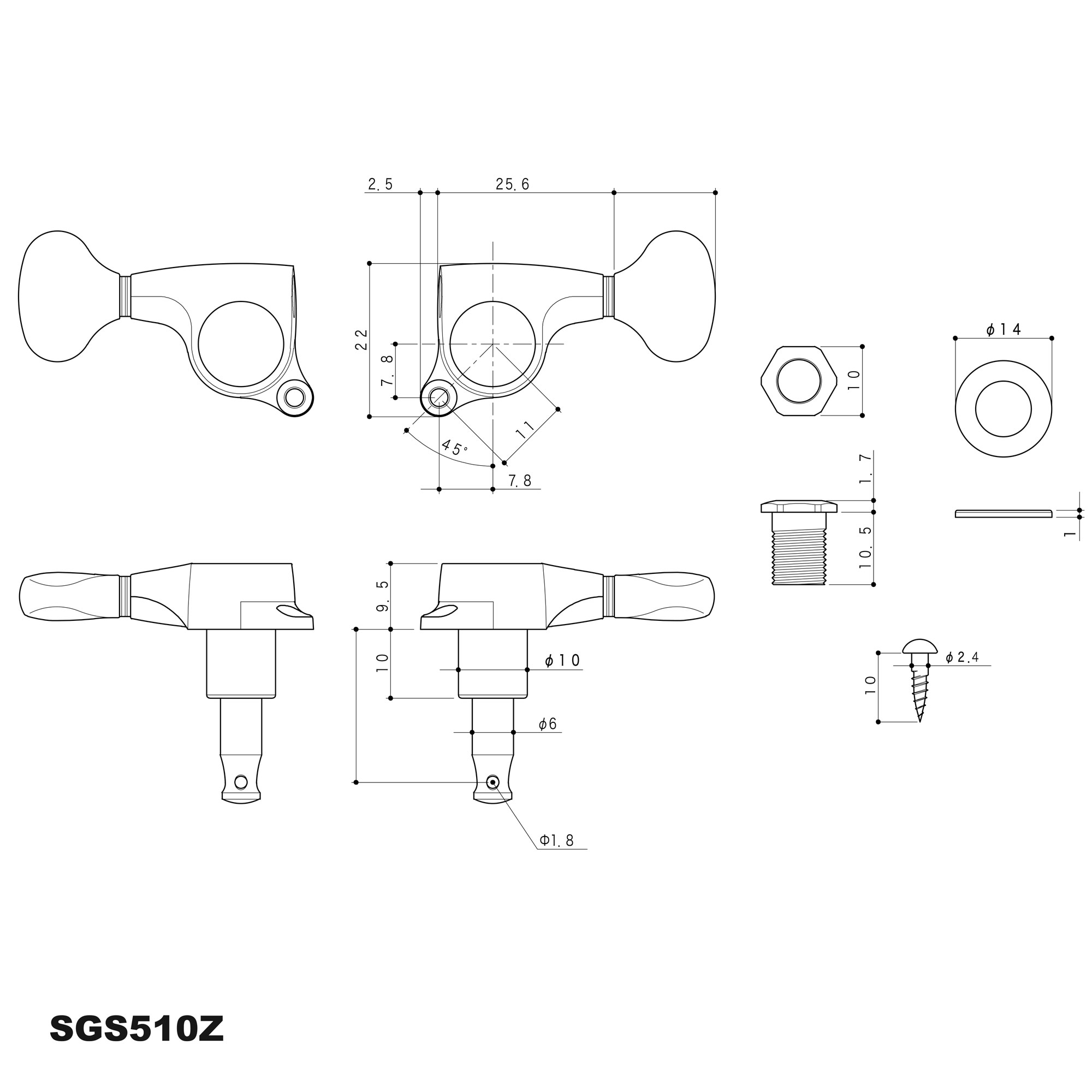 3 + 3 mini-mécaniques Gotoh 510 avec boutons personnalisés
