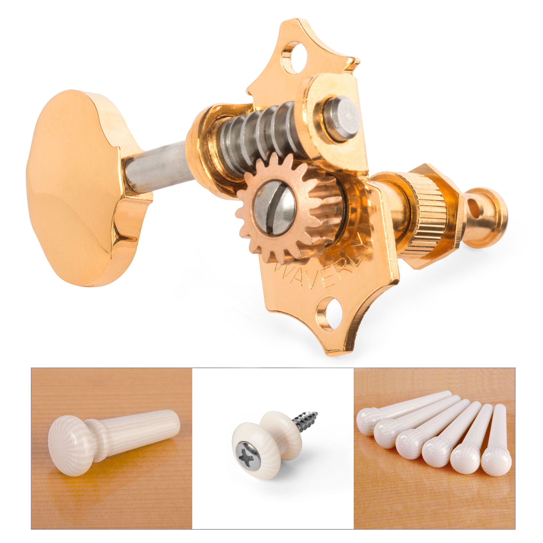 Tuning Machines : le choix de guitaristes renommés pour leurs instruments les plus fins. Les Waverlys sont dotées de tiges à corde coniques de style ancien et de douilles hexagonales en laiton press-fit. Engrenages à vis sans fin en acier inoxydable avec rapport 16:1 de vitesse. Vis incluses avec cet ensemble de 6 pour 3,3 têtes de cheville pleines. Également vendu séparément