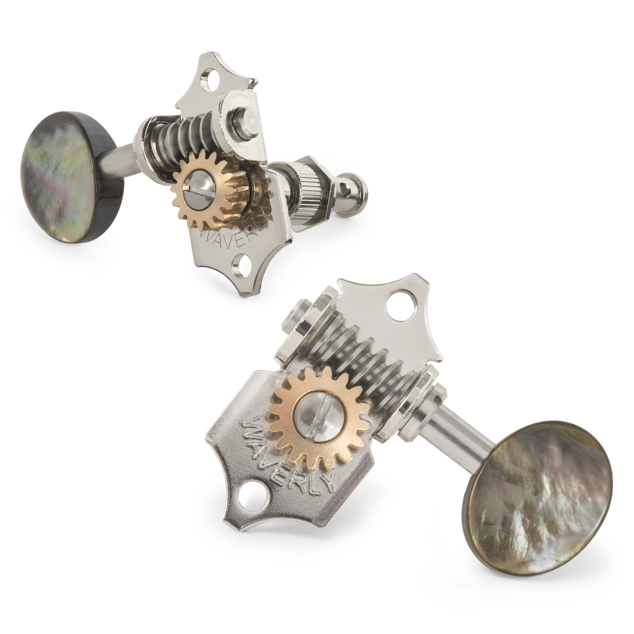 Avec les mécaniques Waverly, vos guitares sont bien accordées et le restent. La conception brevetée de Waverly associe l'acier inoxydable au bronze pour créer un réglage lisse et antidérapant. Les machines Waverly sont mécaniques pour remplacer les instruments de valeur. Elles sont faites à la main pour s’adapter précisément sans forer sur les guitares Martin et Gibson plus anciennes. Des fabricants tels que C.F. Martin, Gibson, Collings, Santa Cruz, Huss & Dalton, Sams et Bourgeois choisissent Waverlys pour leurs instruments les plus raffinés.