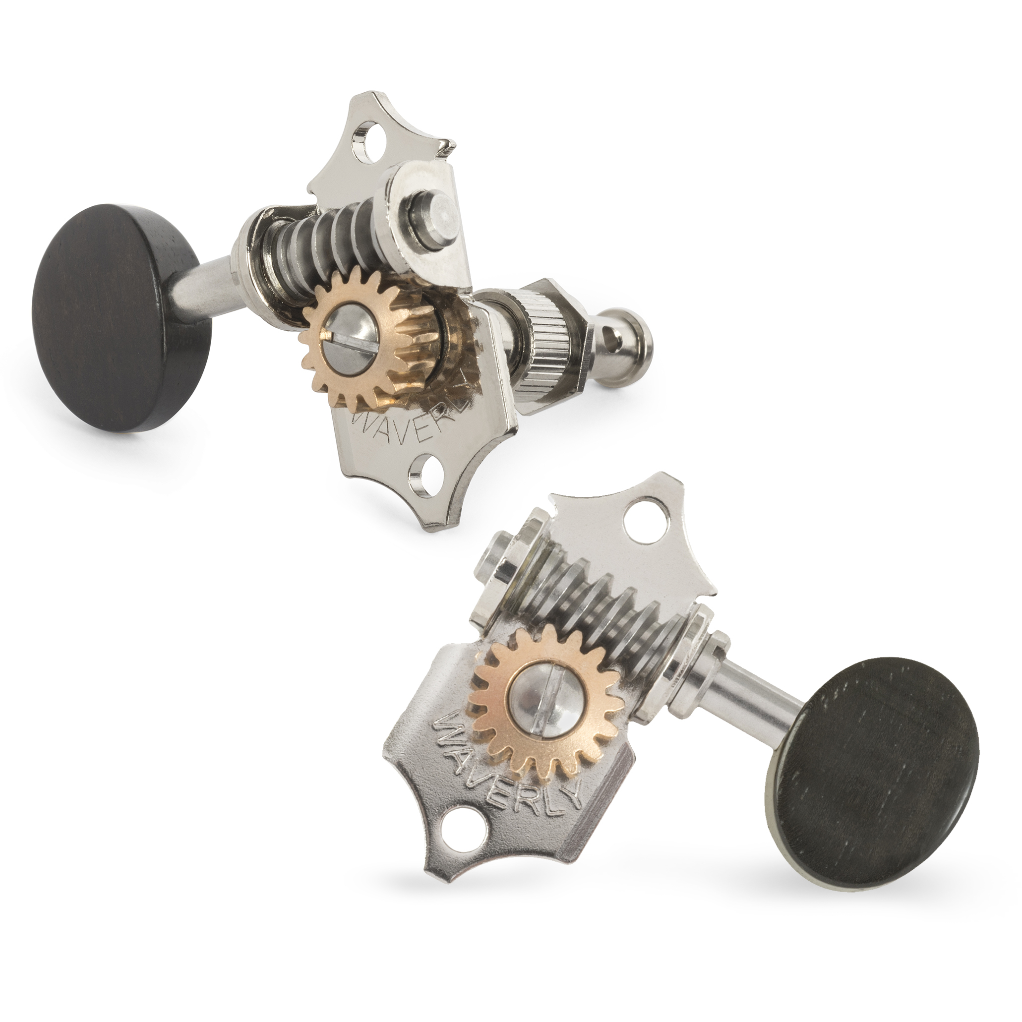 Avec les mécaniques Waverly, vos guitares sont bien accordées et le restent. La conception brevetée de Waverly associe l'acier inoxydable au bronze pour créer un réglage lisse et antidérapant. Les machines Waverly sont mécaniques pour remplacer les instruments de valeur. Elles sont faites à la main pour s’adapter précisément sans forer sur les guitares Martin et Gibson plus anciennes. Des fabricants tels que C.F. Martin, Gibson, Collings, Santa Cruz, Huss & Dalton, Sams et Bourgeois choisissent Waverlys pour leurs instruments les plus raffinés.