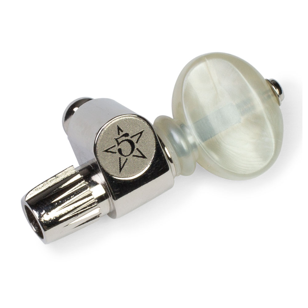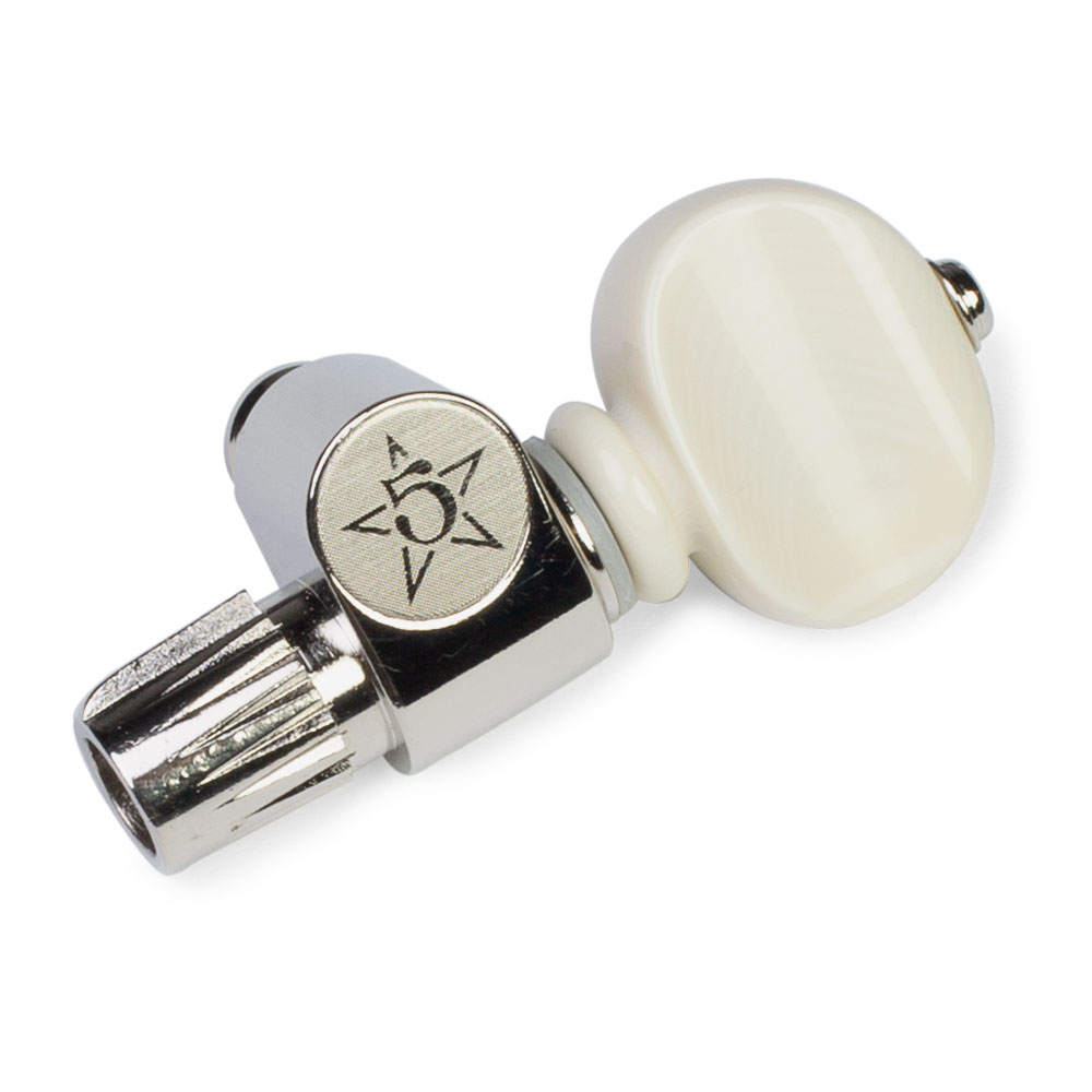 Ce piquet Five-Star 5e corde a un design d’engrenage à vis sans fin traditionnel de haute qualité. Il est doté d’une cheville à angle droit avec tige de chaîne, avec un rapport de 14:1 vitesse pour un réglage fluide et précis.