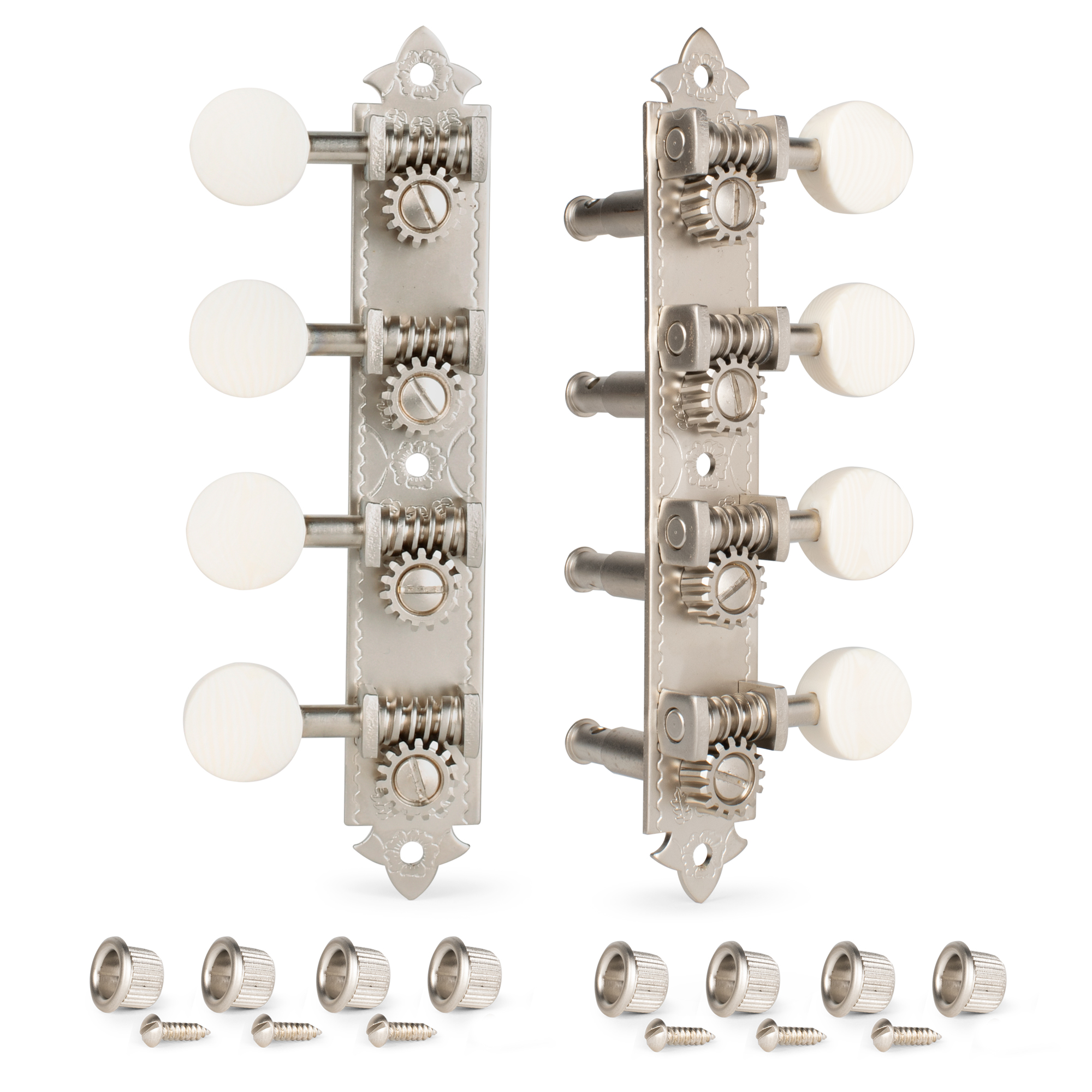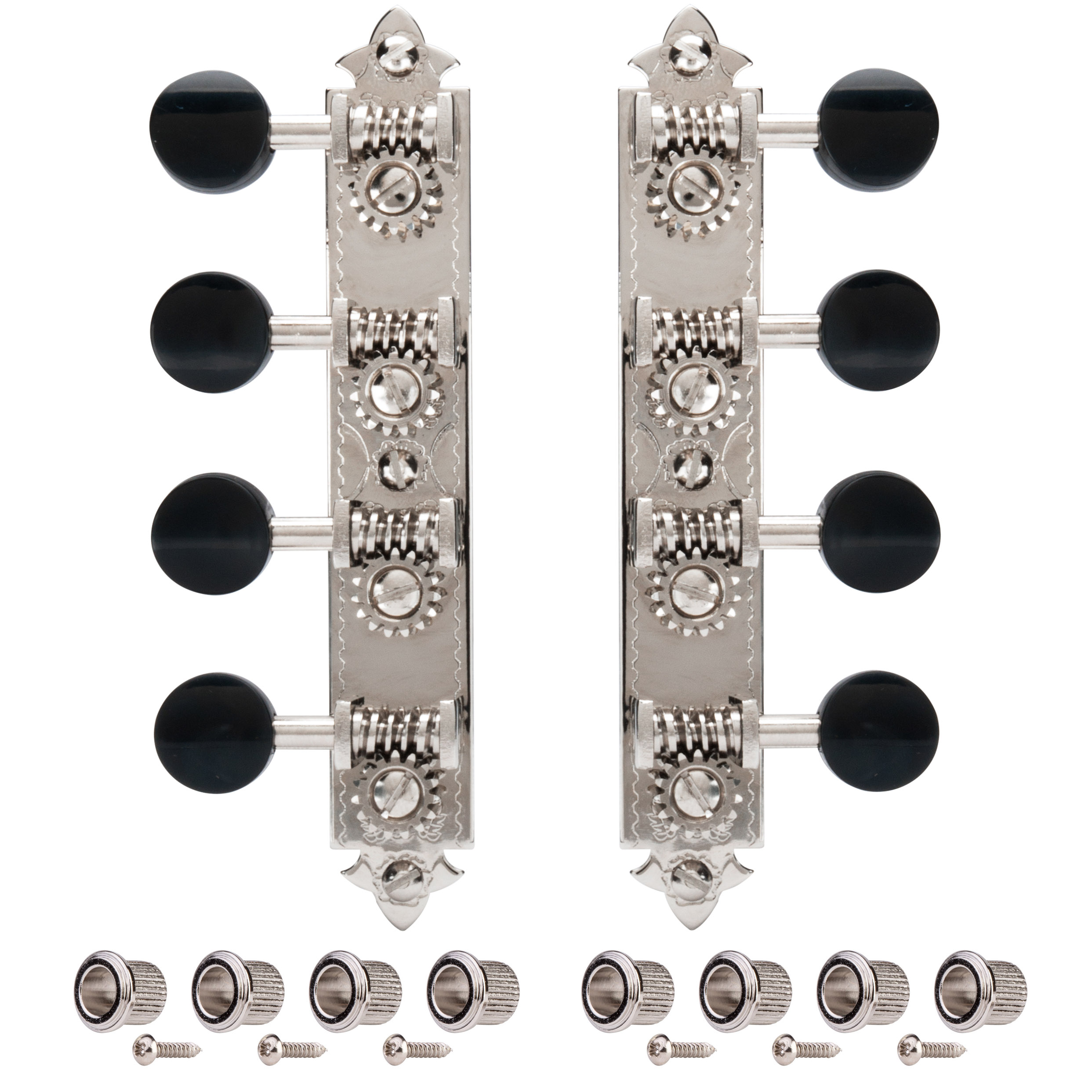 Vous en avez assez de combattre les vieux mécaniques cantankereux mais vous ne voulez pas abandonner le look vintage ? Nous avons complètement repensé nos mécaniques en mandoline Golden Age ! Sous la direction de Don MacRostie de StewMac, célèbre fabricant de mandoline, nous avons ramené les caractéristiques classiques des machines de réglage de l’époque d’avant la Seconde Guerre mondiale.Modèles