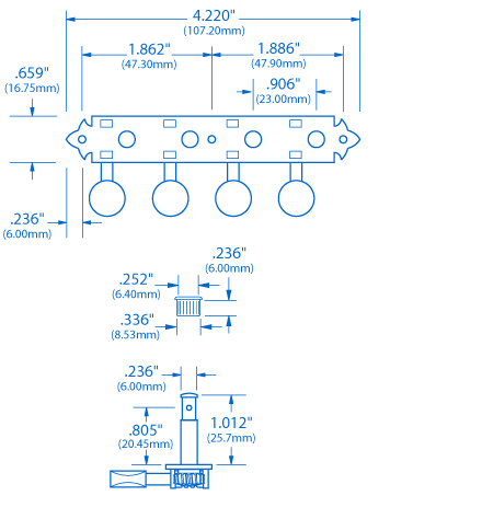 Espacement des trous de cheville : les dispositifs de mécaniques sur plaque ne peuvent pas fonctionner efficacement si les trous de cheville sont mal percés. Notre gabarit de perçage à tête creuse Mandolin garantit un espacement précis de 29/32 po pour un alignement précis de ces machines de réglage.