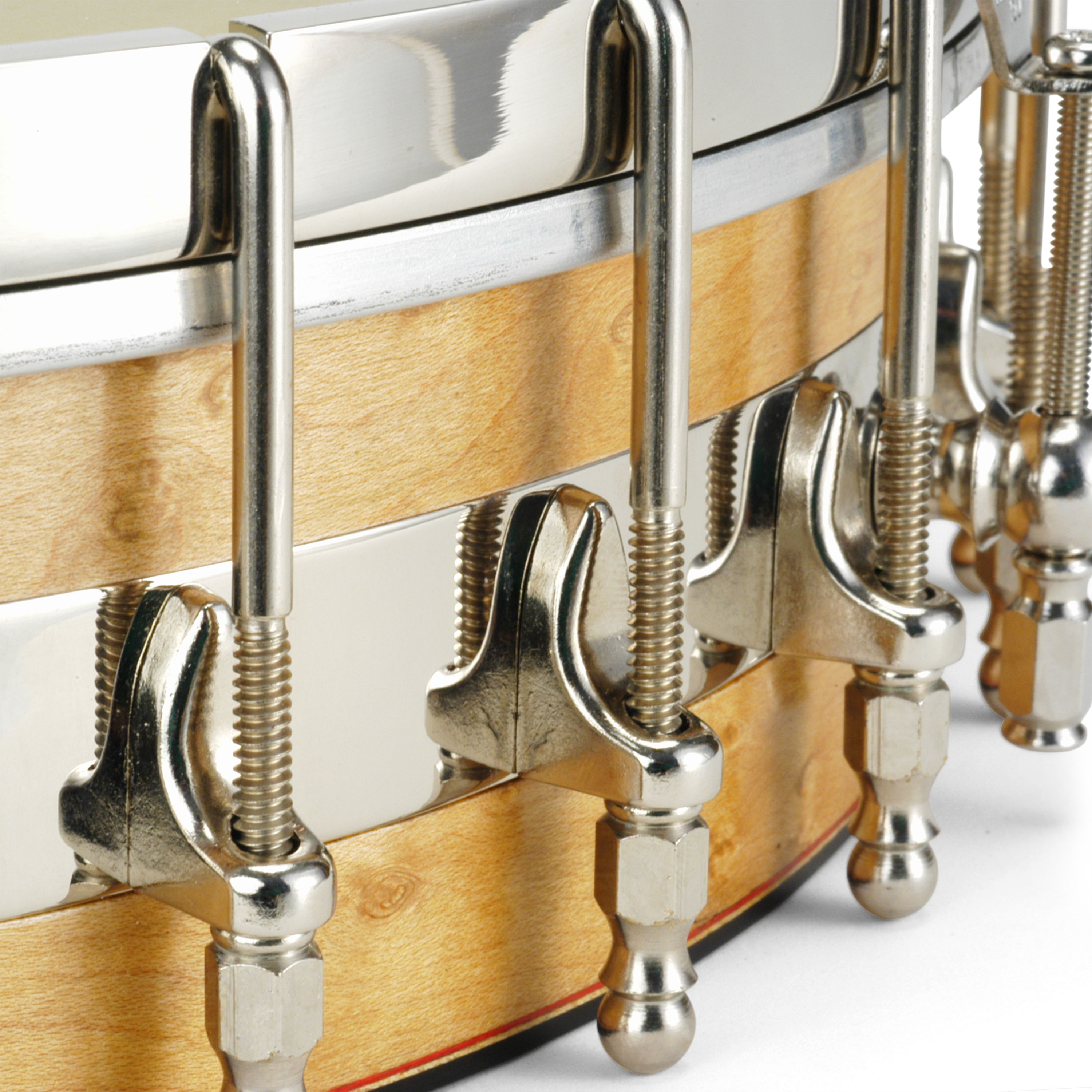 ferrure traditionnel pour banjo. Cette jolie chaussure en L en alliage de zinc nickelé moulé sous pression est dotée d’un crochet de fixation sur le côté d’une jante banjo.