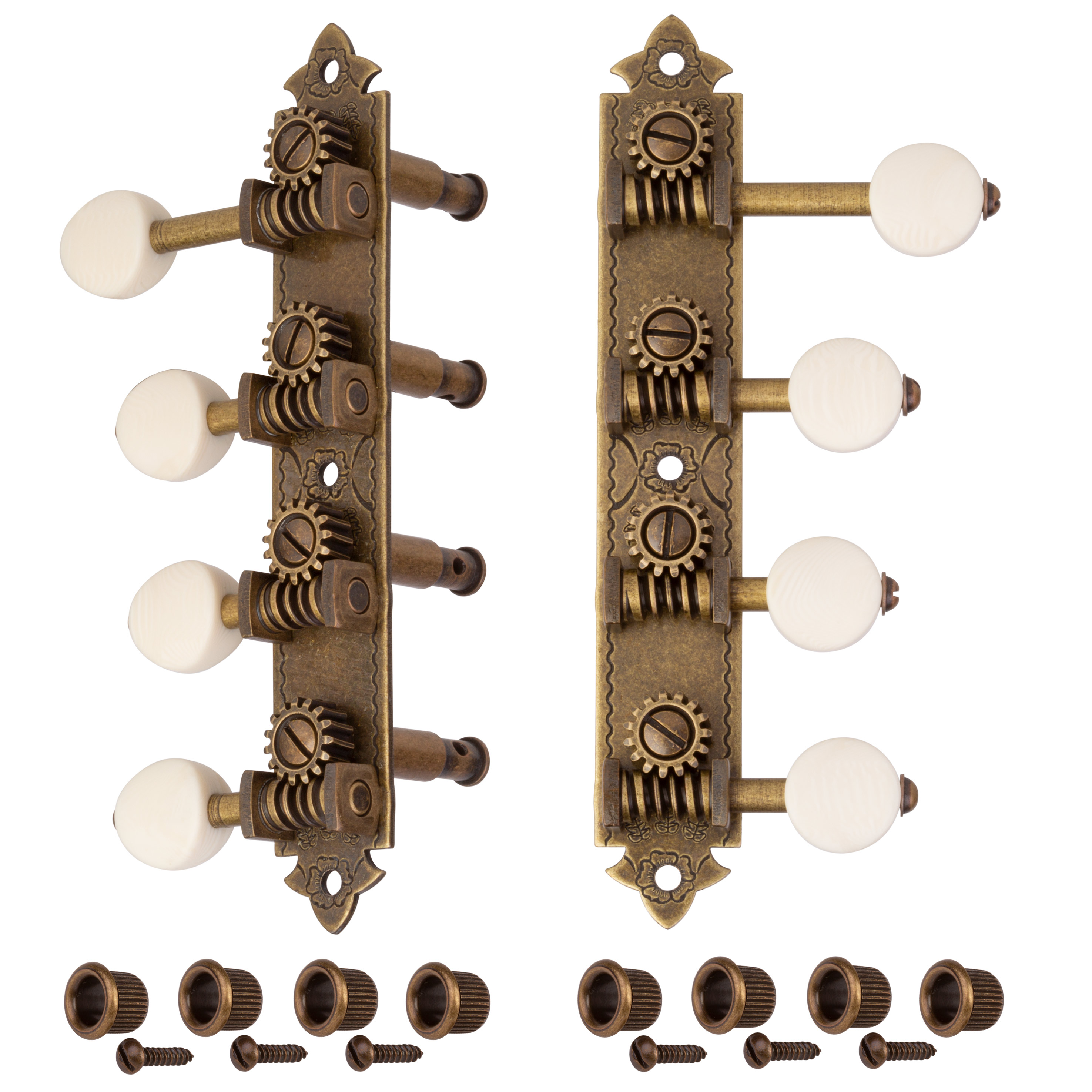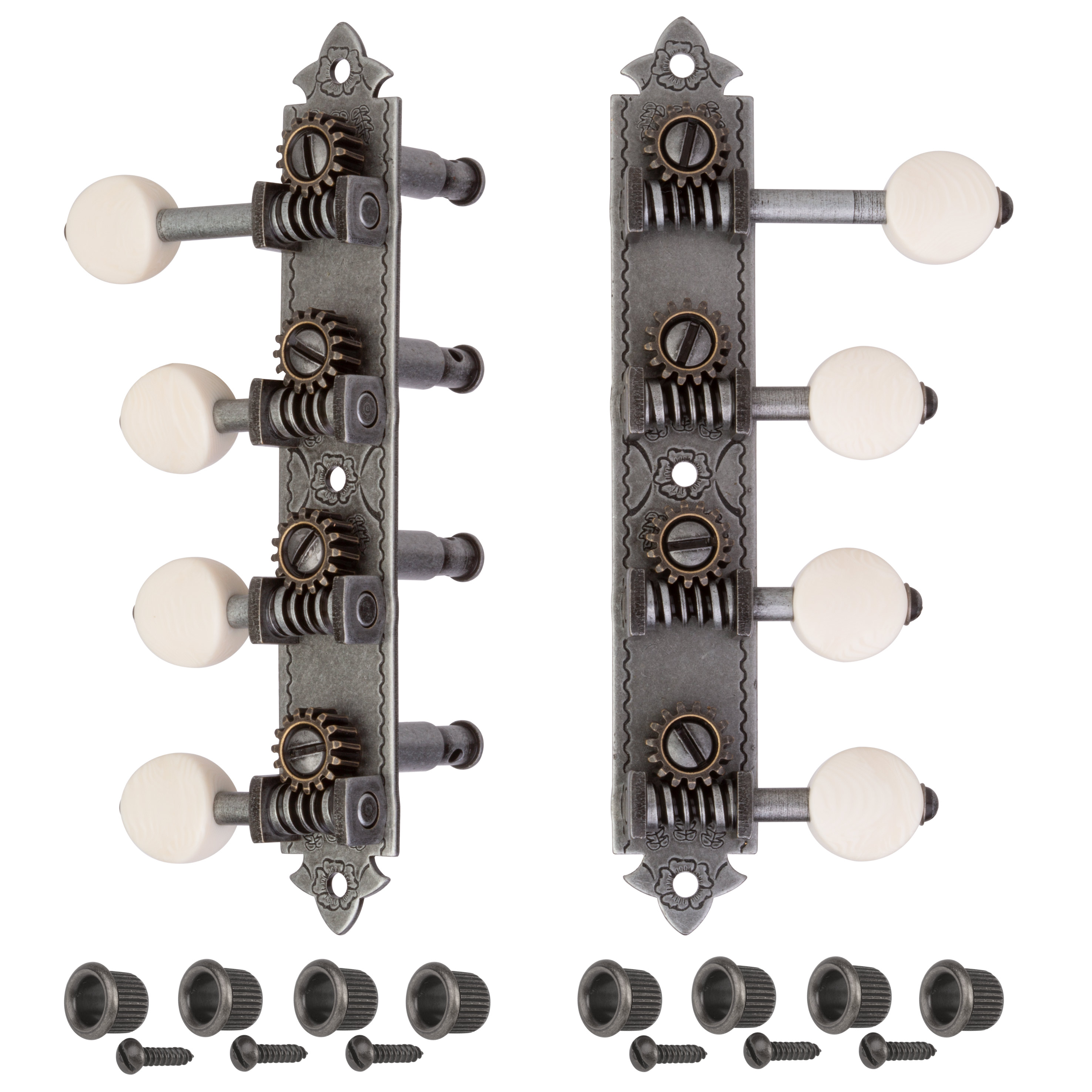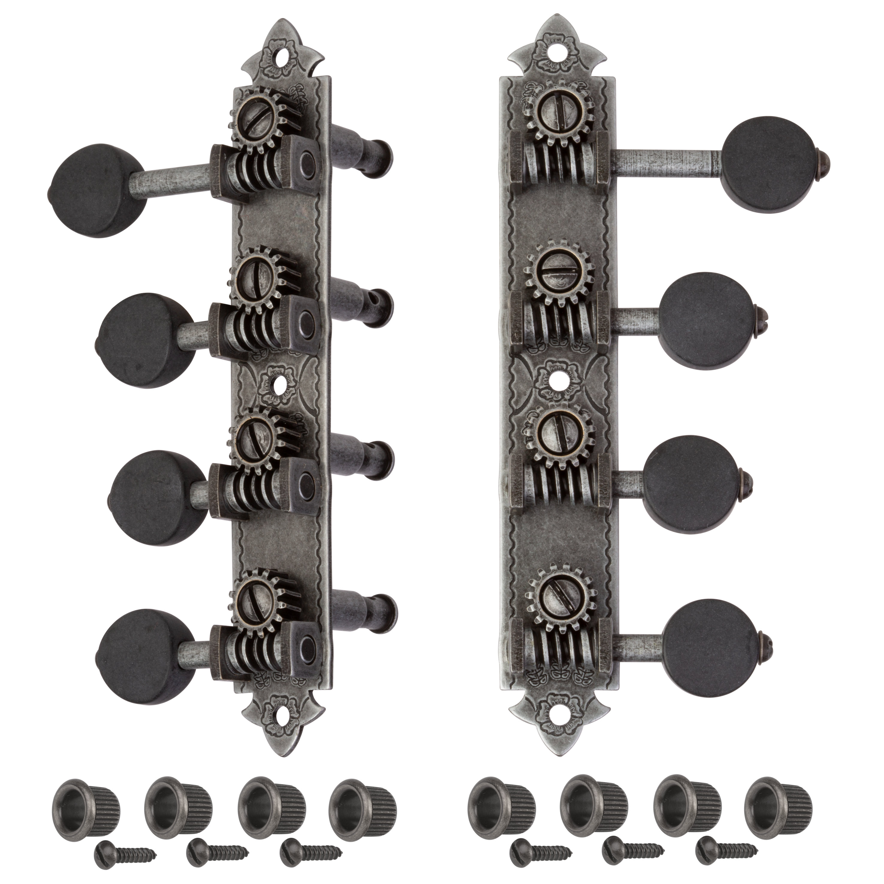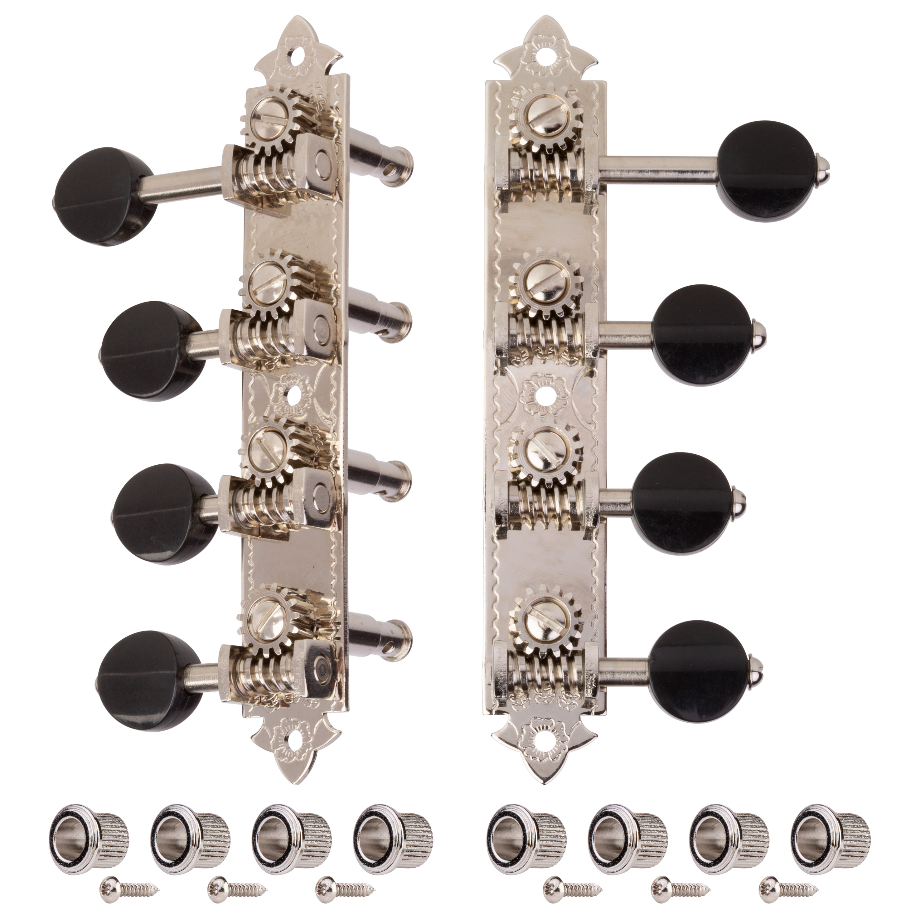 Vous en avez assez de combattre les vieux mécaniques cantankereux mais vous ne voulez pas abandonner le look vintage ? Nous avons complètement repensé nos mécaniques en mandoline Golden Age ! Sous la direction de Don MacRostie de StewMac, célèbre fabricant de mandoline, nous avons ramené les caractéristiques classiques des machines de réglage de l’époque d’avant la Seconde Guerre mondiale.