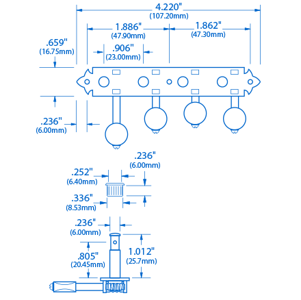 Espacement des trous de cheville : les dispositifs de mécaniques sur plaque ne peuvent pas fonctionner efficacement si les trous de cheville sont mal percés. Notre gabarit de perçage à tête creuse Mandolin garantit un espacement précis de 29/32 po pour un alignement précis de ces machines de réglage.