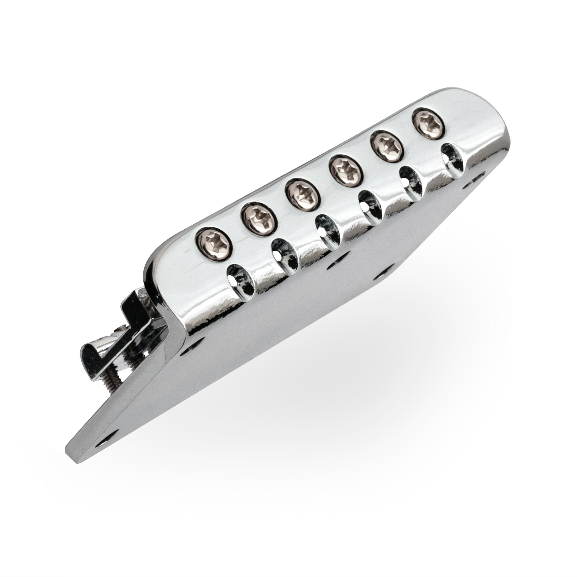 Un pont bien fait à un prix exceptionnel ! Fixez vos cordes à travers les trous de la base en acier, sous les vis d’intonation, sans fresado du corps nécessaire. Une clé Allen est incluse pour ajuster les hauteurs de sillet individuelles.