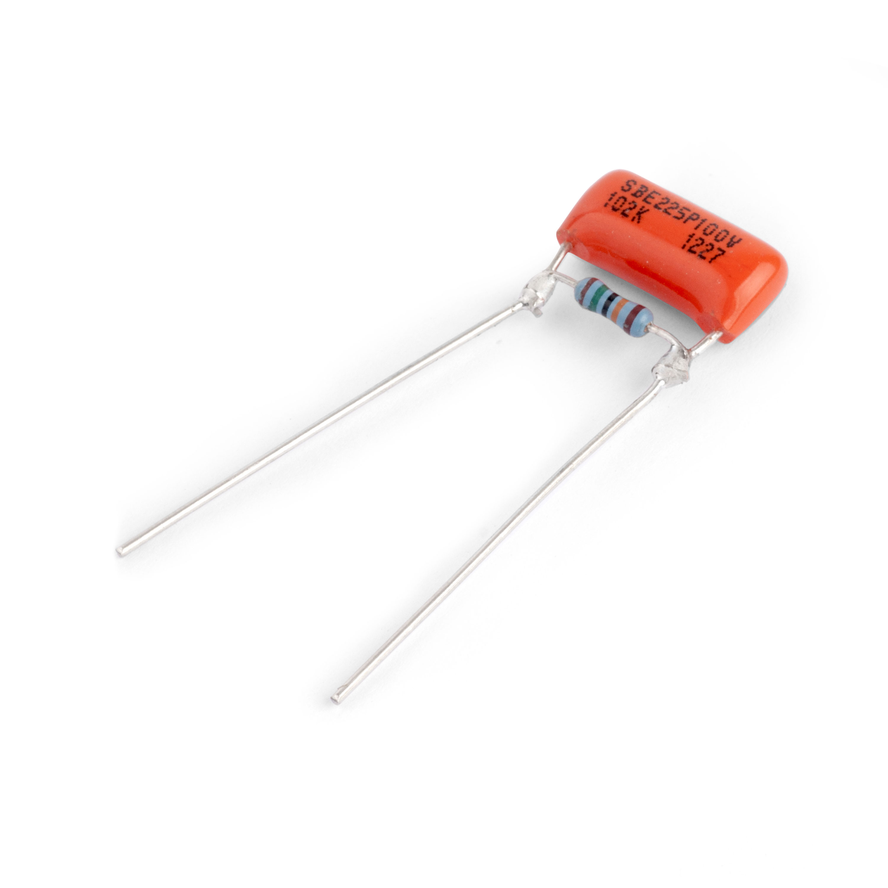 Soudé à la main ici dans notre magasin une résistance 150K-ohm 1/4-watt (tolérance de 1 %) en parallèle avec un condensateur 0,0,001uF . Câblez ce modification simple entre les cosses d’entrée et de sortie de votre potentiomètre de réglage du volume de guitare pour lisser les treble bleed. Obtenez une tonalité plus uniforme de 1 à 10 et un son plus arrondi à faible volume. Disponible avec condensateur céramique ou Push-pull Pots®.Écoutez la différence dans TradeSecrets, numéro 182.