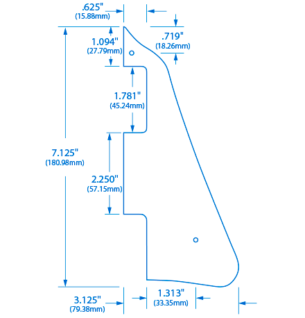 Le pickguard noir/blanc/noir a un bord biseauté pour révéler les laminations, et la version crème a le bord carré original. Les deux ont une surface supérieure brillante et des trous de vis fraisés.Le support mesure 2-1/4" x 1" (57,15 mm x 25,40 mm). Le trou de montage est situé à 3/4" (19,05 mm) sur le côté du support. La fente de montage supérieure du support est de 1/8" x 1-1/8" (3,18 mm x 28,58 mm).