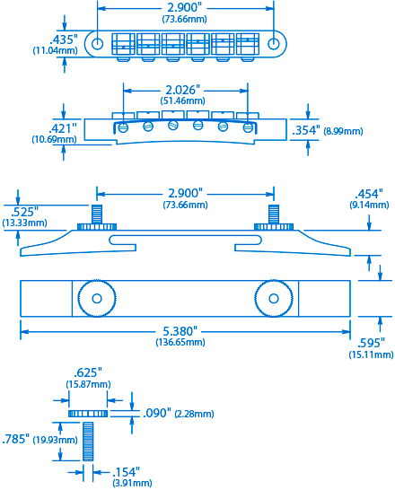 La hauteur est réglable par molette d'environ 7/8" à 1-1/4" (22,23 mm à 31,75 mm). Les selles sont pré-fretté et réglables pour définir l’intonation précise de la corde.