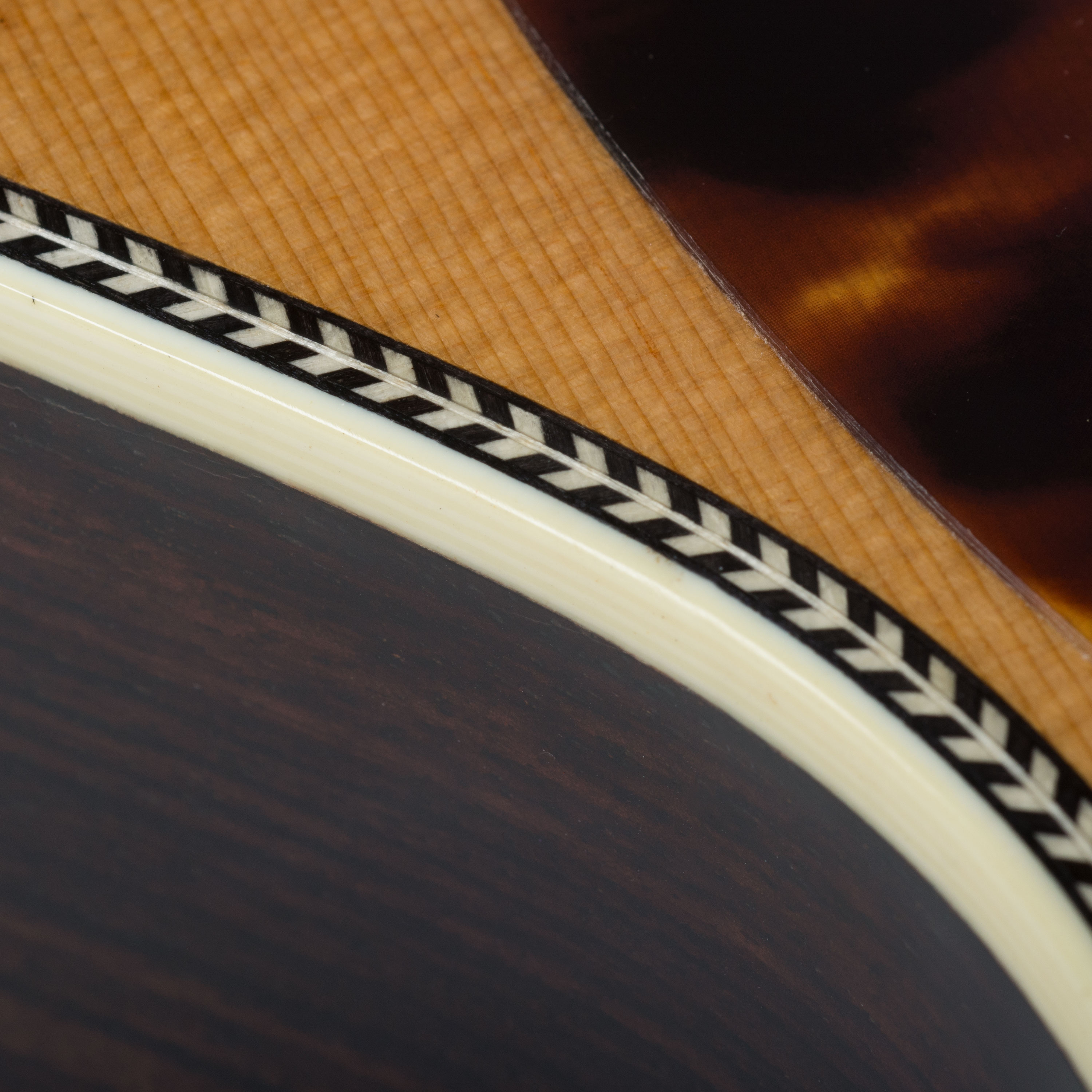 Ce filet chevrons présente les caractéristiques authentiques et emblématiques de Style-28 Martin pour cette apparence vintage emblématique, fabriquée en fibre noire laminée et en bois clair naturel non teinté.