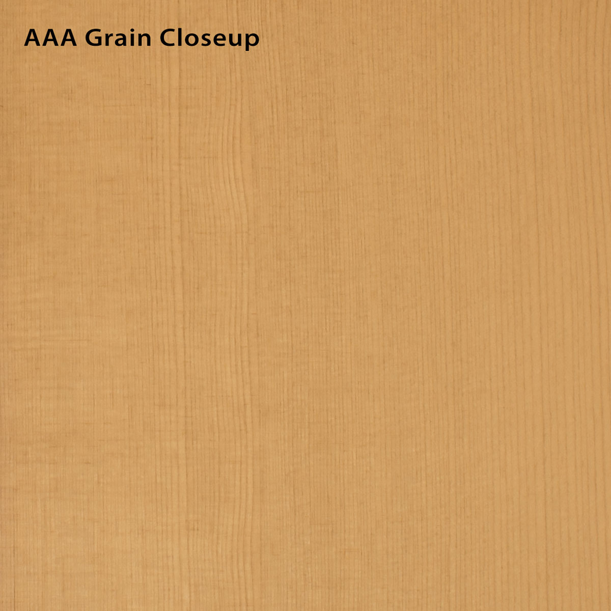 Droite du grain : les qualités de la planche à son supérieures ont un grain plus droit, plus serré et plus uniforme. Bien que le grain espacé ait été traditionnellement préférée, les luthiers ont constaté que le grain plus large peut produire un très bon teint.